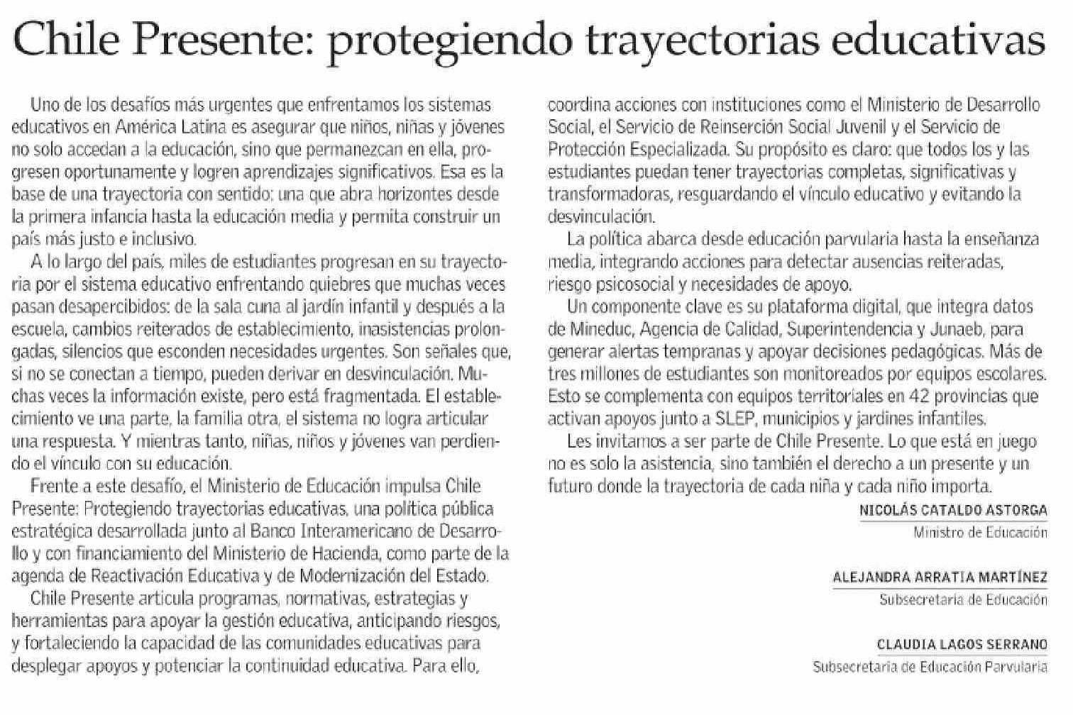 CARTAS: Chile Presente: protegiendo trayectorias educativas