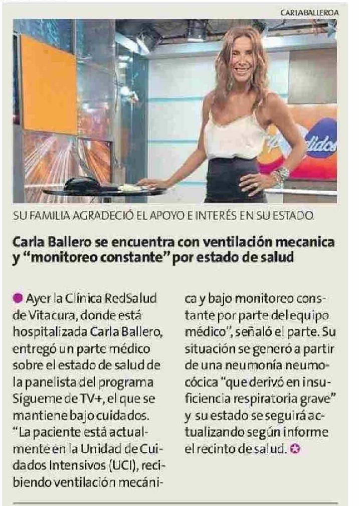 Carla Ballero se encuentra con ventilación mecanica y "monitoreo constante" por estado de salud