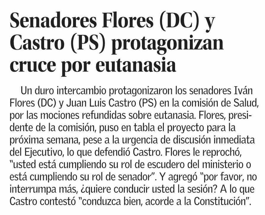 Senadores Flores (DC) y Castro (PS) protagonizan cruce por eutanasia