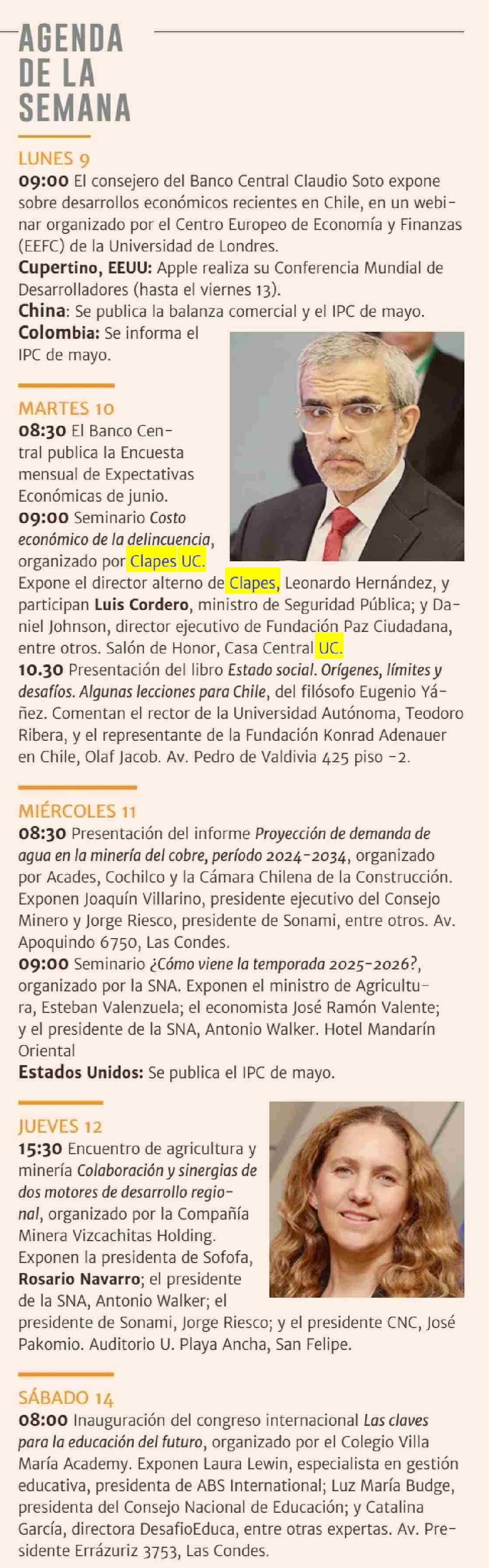 AGENDA DE LA SEMANA