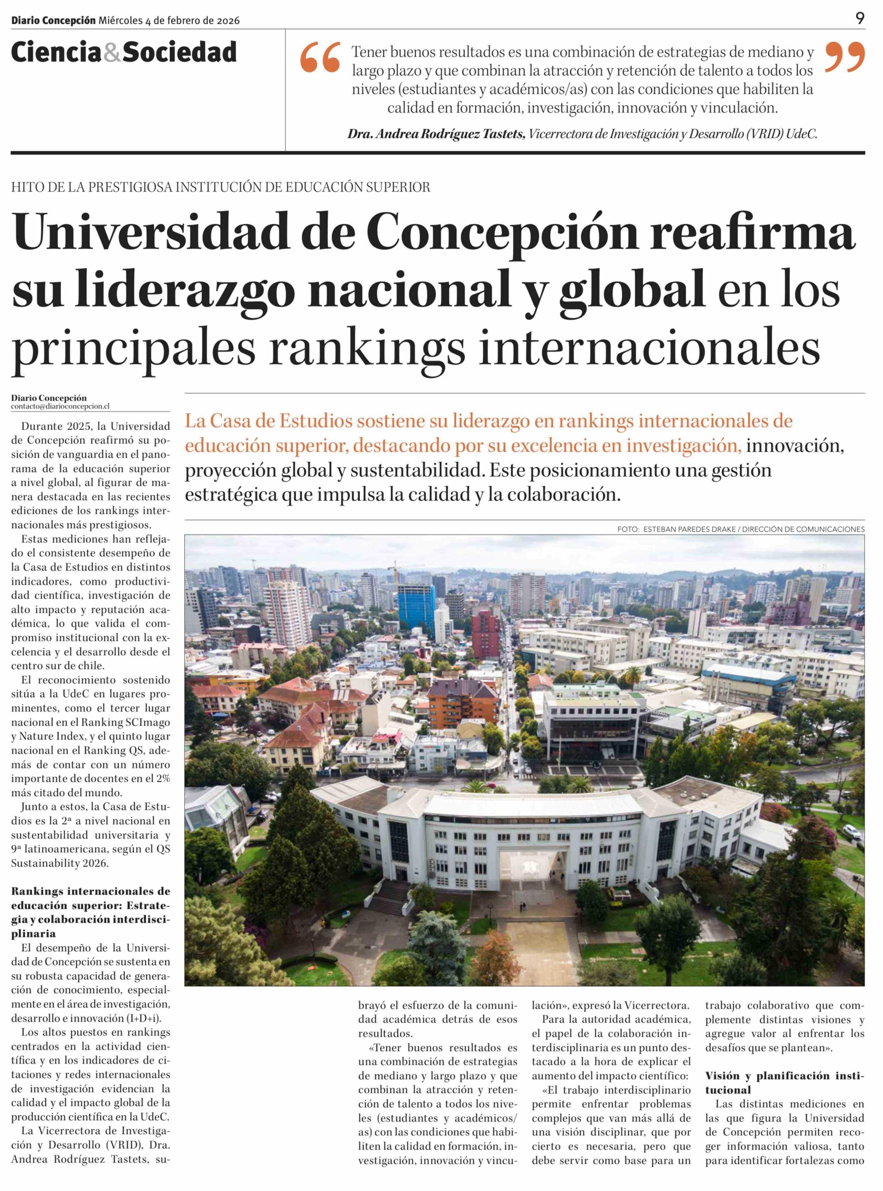 Universidad de Concepción reafirma su liderazgo nacional y global en los principales rankings internacionales