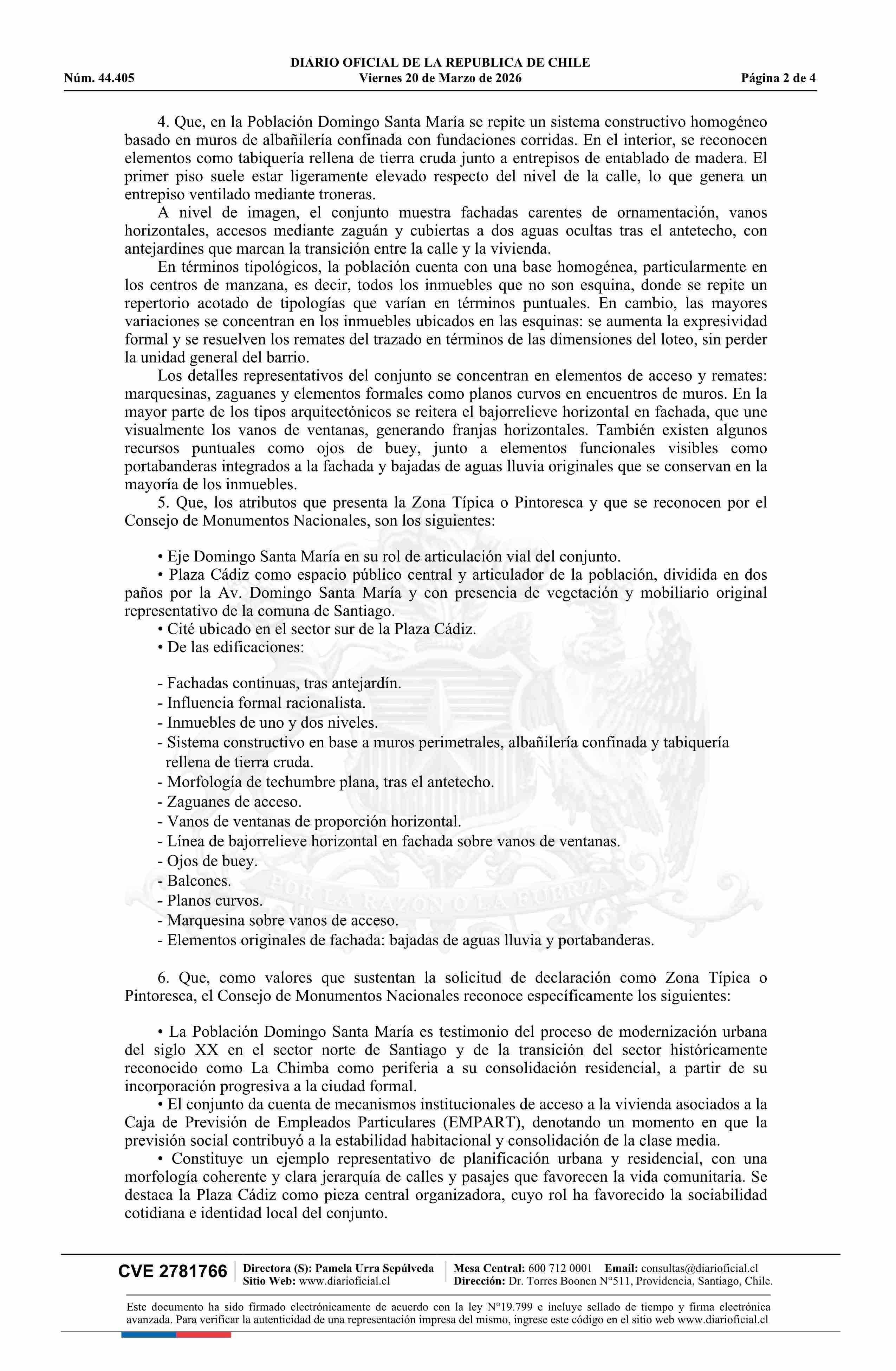 Título: Decreto exento número 43, de 2026.- Declara Monumento Nacional, en la Categoría de Zona Típica o Pintoresca, la Población Domingo Santa María, comuna de Independencia, Región Metropolitana de Santiago