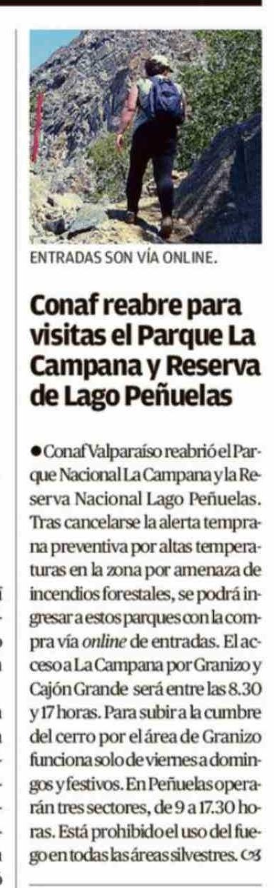 Conaf reabre para visitas el Parque La Campana y Reserva de Lago Peñuelas