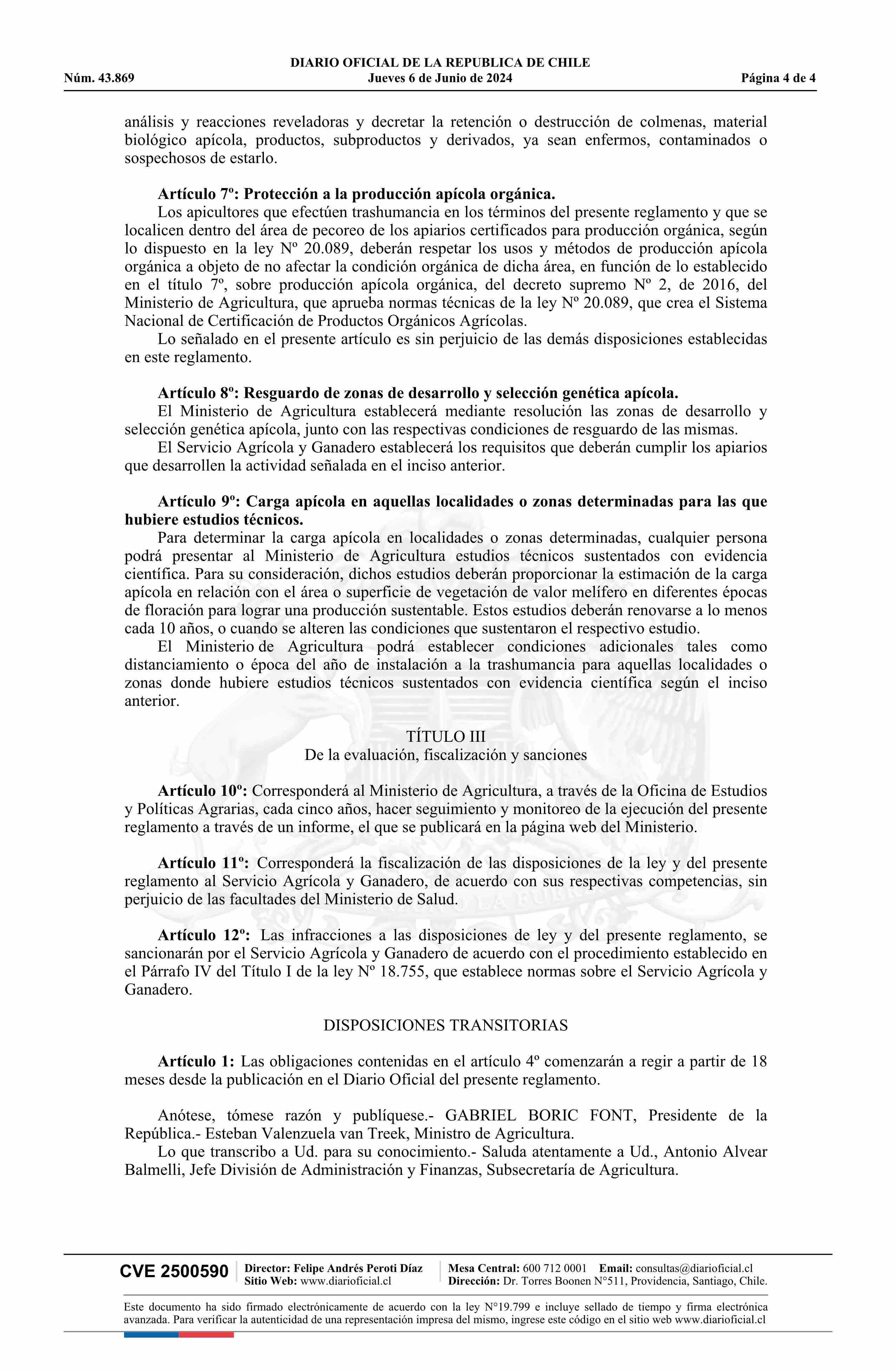 | Título: | Decreto número 21, de 2023.- Aprueba Reglamento de Trashumancia, en el marco de la Ley Nº 21.489, de Promoción, Protección y Fomento de la Actividad Apícola |