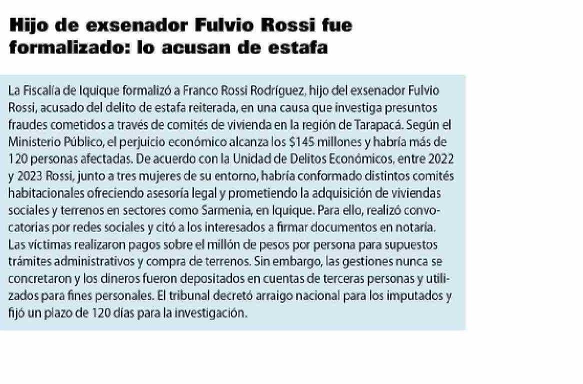 Hijo de exsenador Fulvio Rossi fue formalizado: lo acusan de estafa