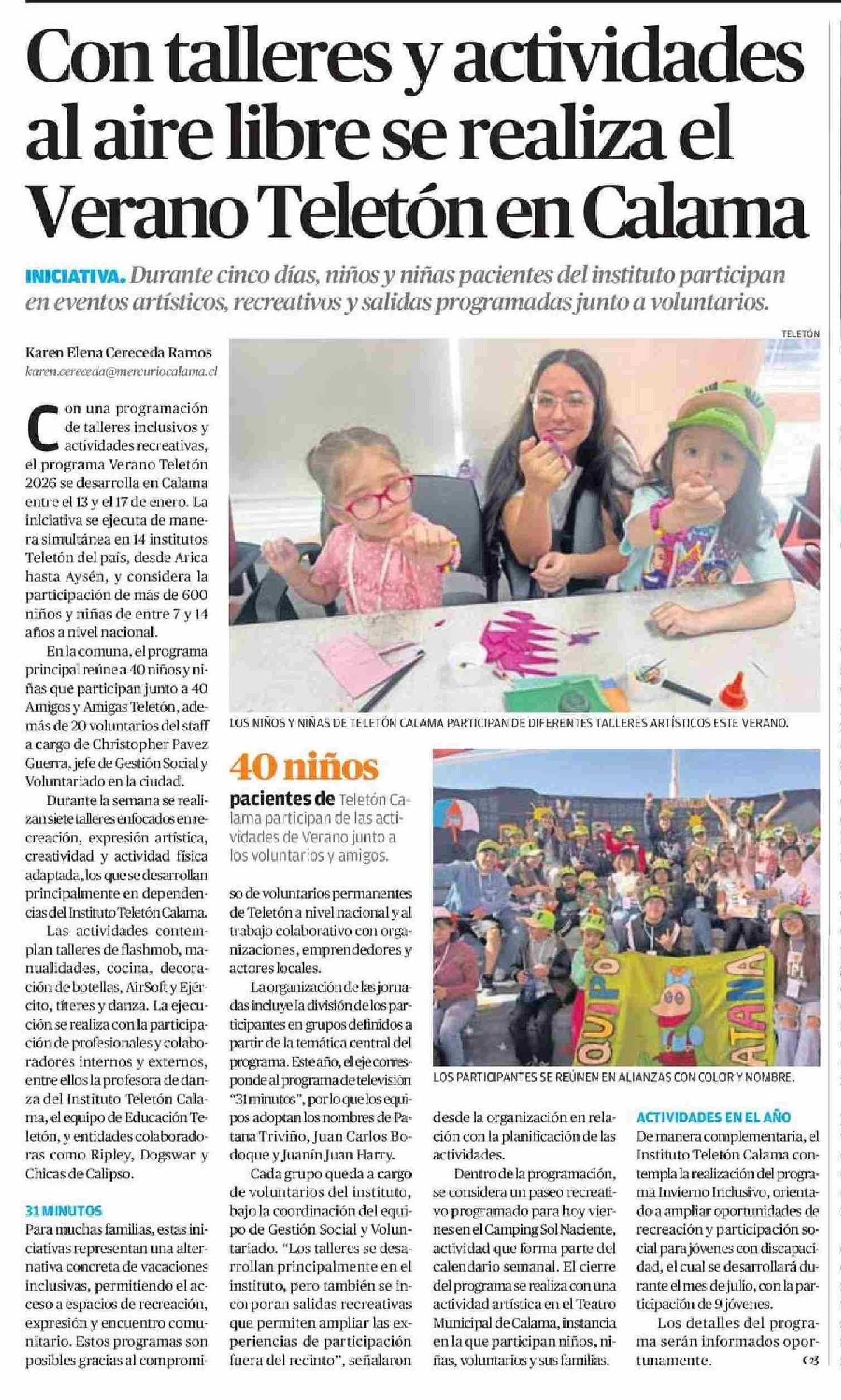Con talleres y actividades al aire libre se realiza el Verano Teletón en Calama