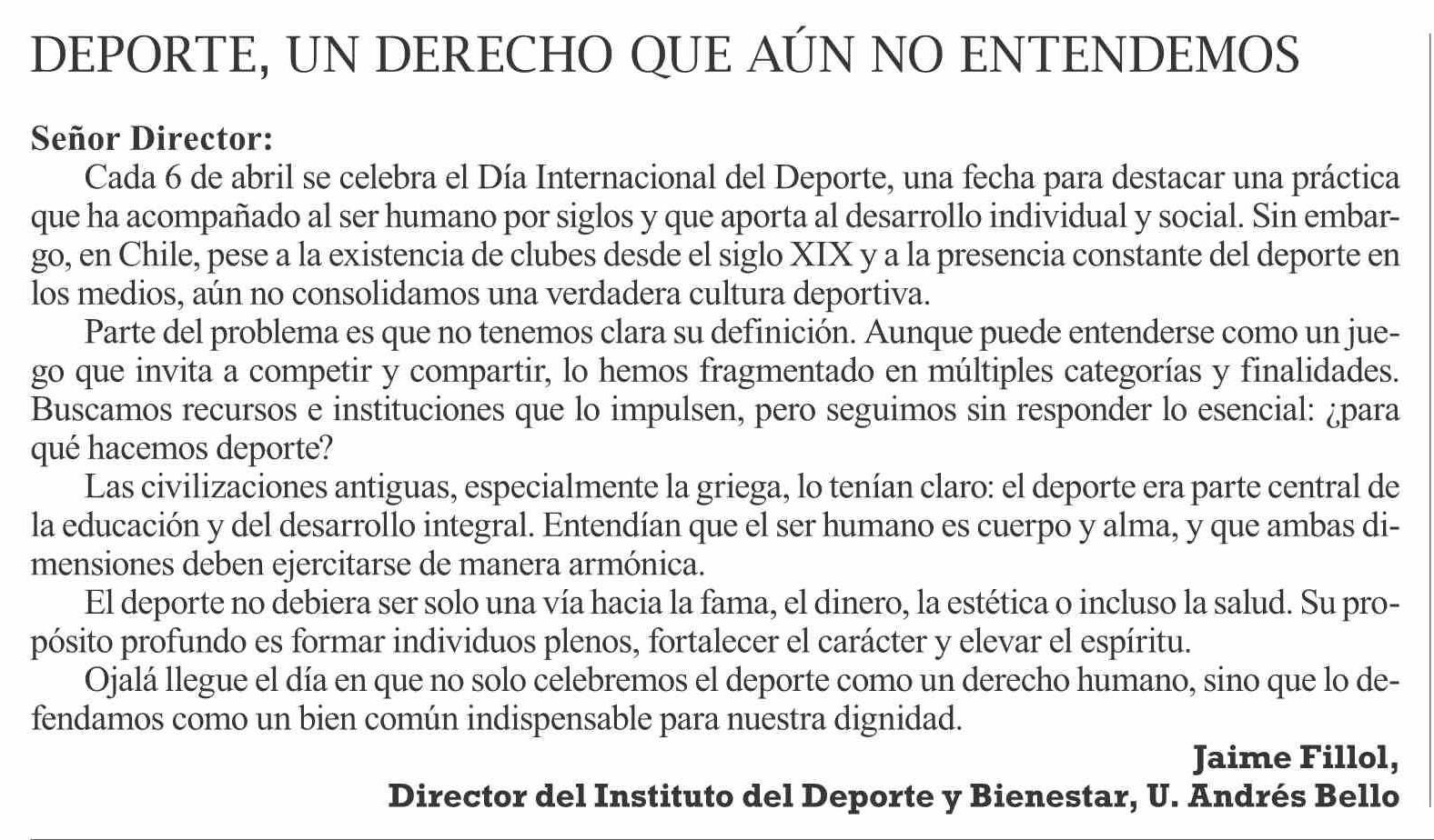 Cartas: DEportE, un dErEcho quE aún no EntEndEmos