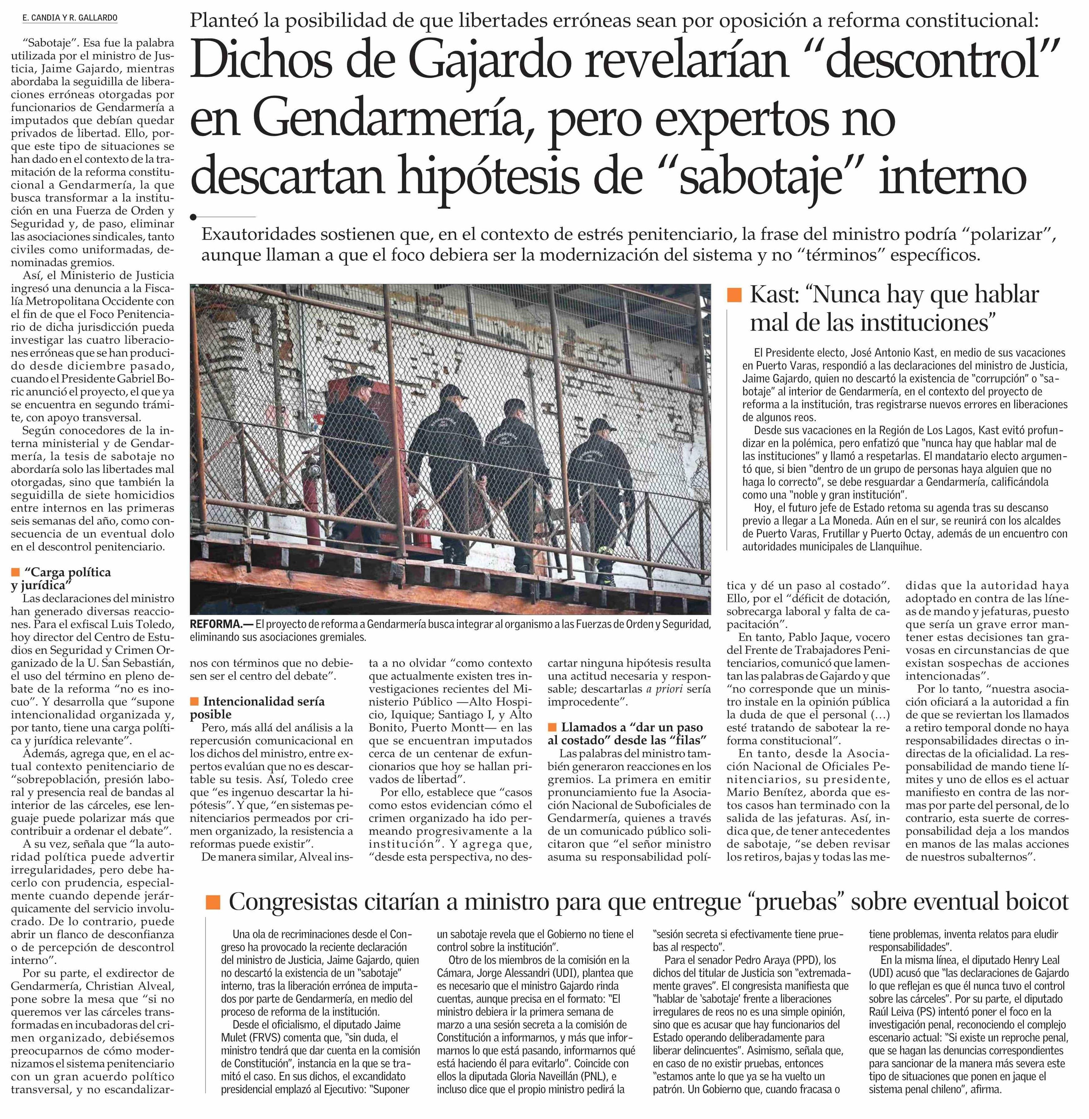 Dichos de Gajardo revelarían “descontrol” en Gendarmería, pero expertos no descartan hipótesis de “sabotaje” interno