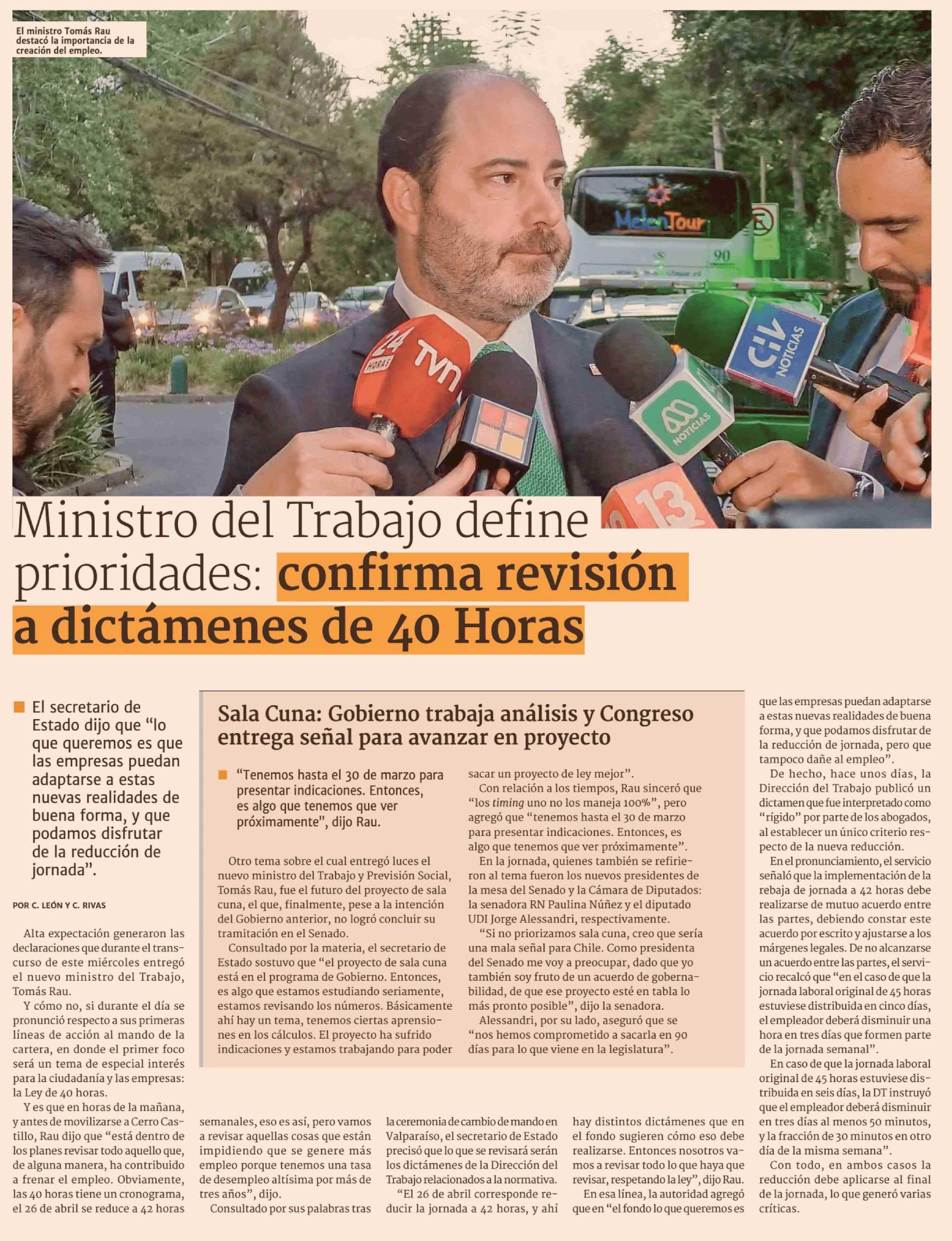 Ministro del Trabajo define 13 prioridades: confirma revisión a dictámenes de 40 Horas