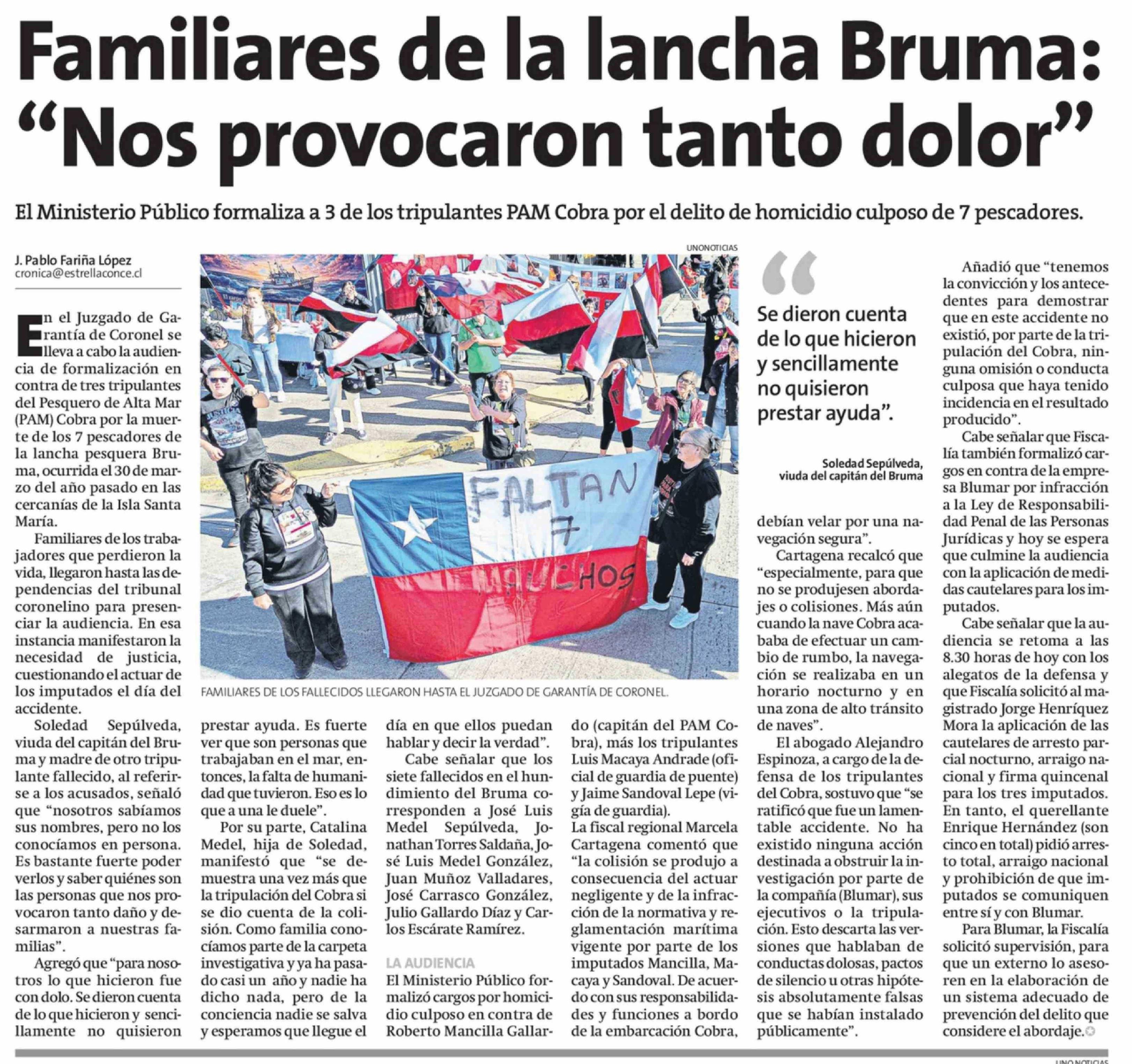 Título: Familiares de la lancha Bruma: "Nos provocaron tanto dolor"