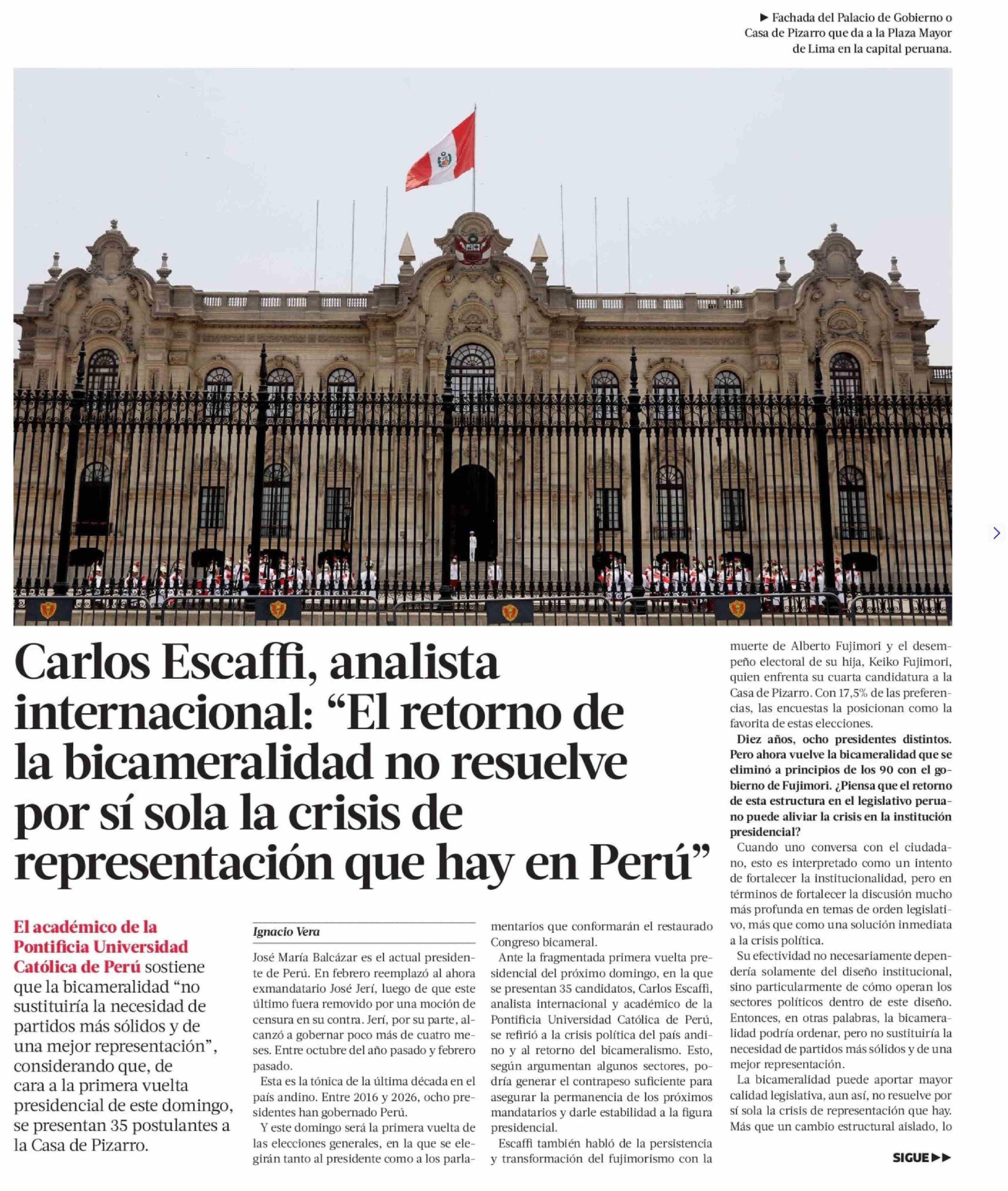 Carlos Escaffi, analista internacional: "El retorno de la bicameralidad no resuelve por sí sola la crisis de representación que hay en Perú"