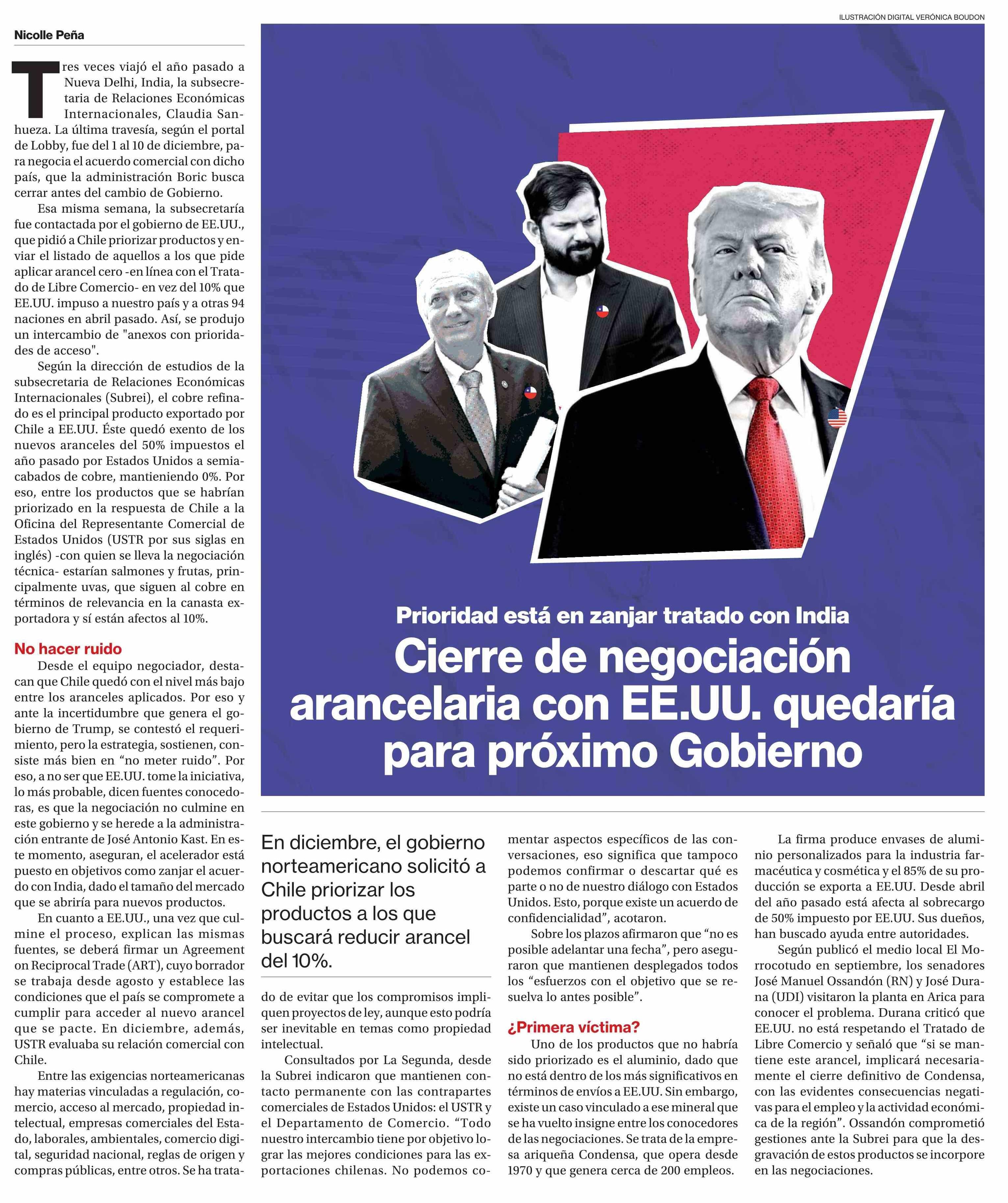 Cierre de negociación arancelaria con EE.UU. quedaría para próximo Gobierno