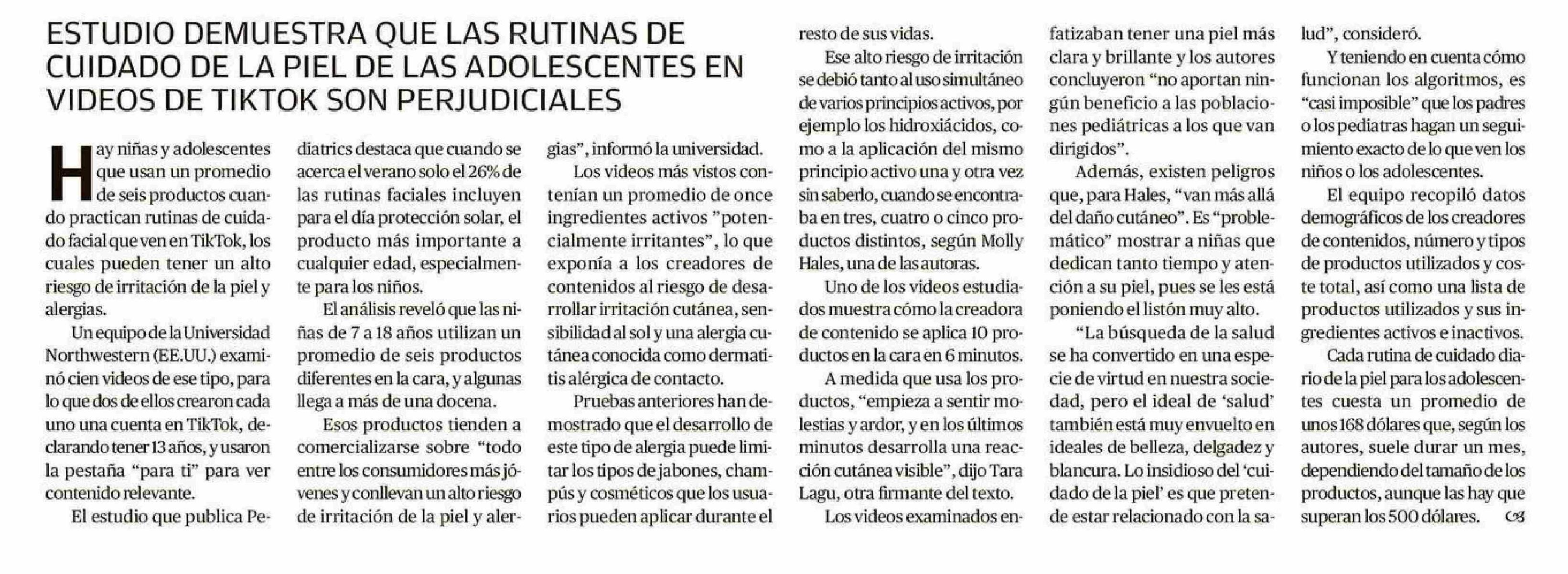ESTUDIO DEMUESTRA QUE LAS RUTINAS DE CUIDADO DE LA PIEL DE LAS ADOLESCENTES EN VIDEOS DE TIKTOK SON PERJUDICIALES