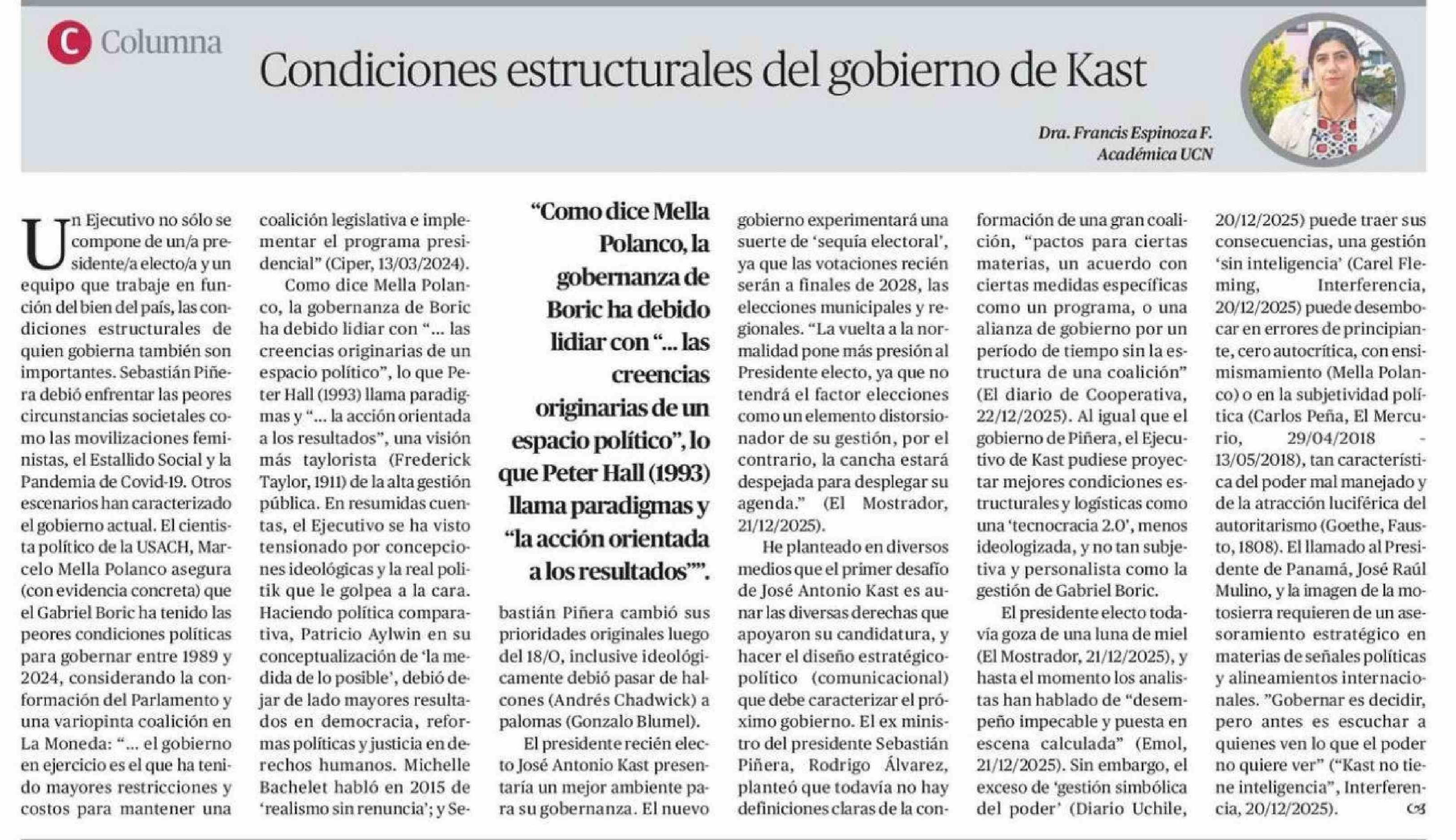 Columnas de Opinión: Condiciones estructurales del gobierno de Kast