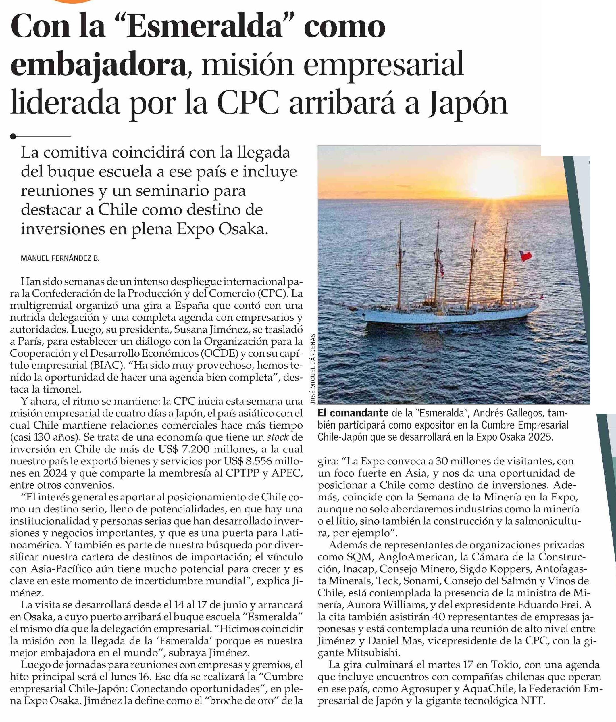 Con la “Esmeralda” como embajadora, misión empresarial liderada por la CPC arribará a Japón