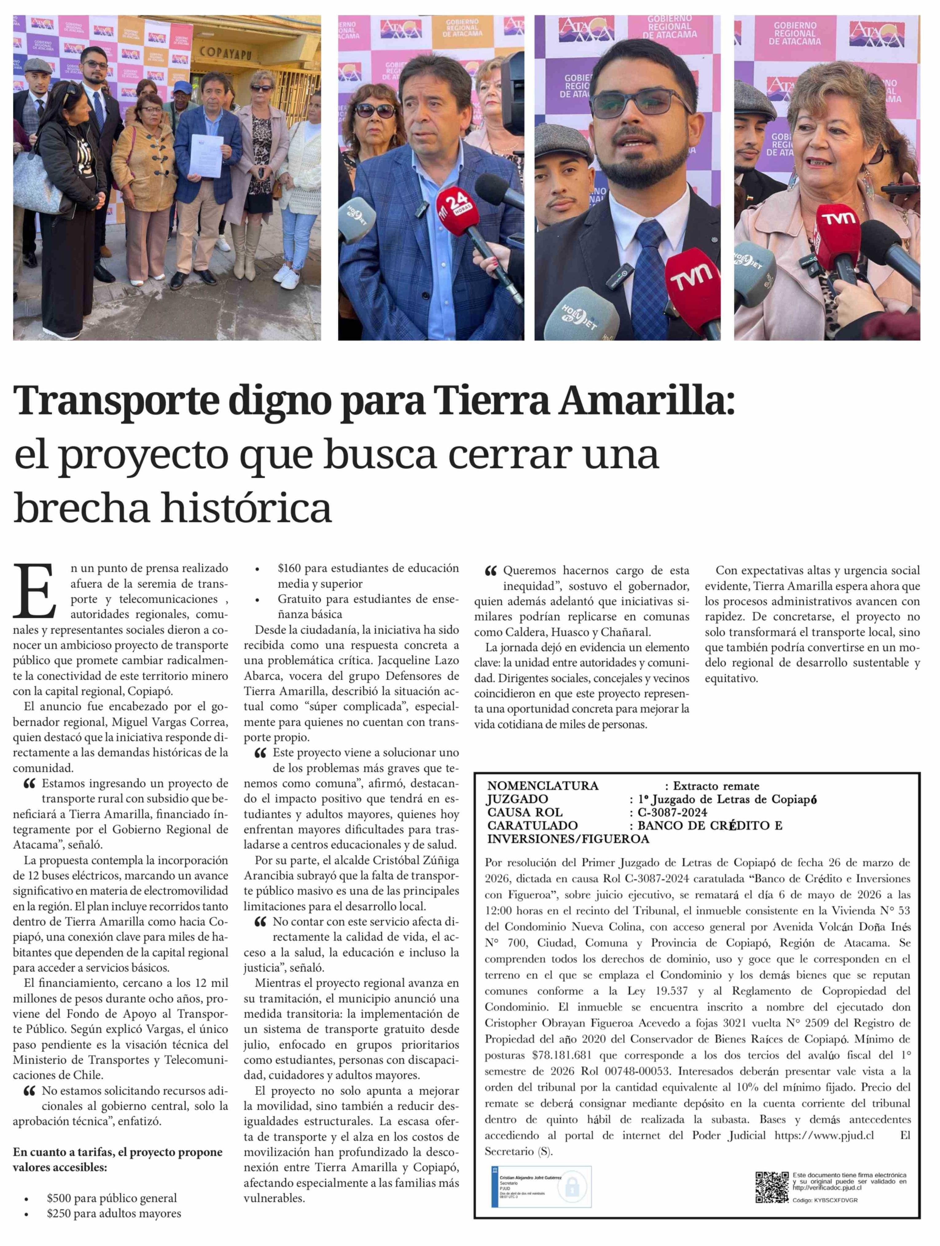 Transporte digno para Tierra Amarilla: el proyecto que busca cerrar una brecha histórica