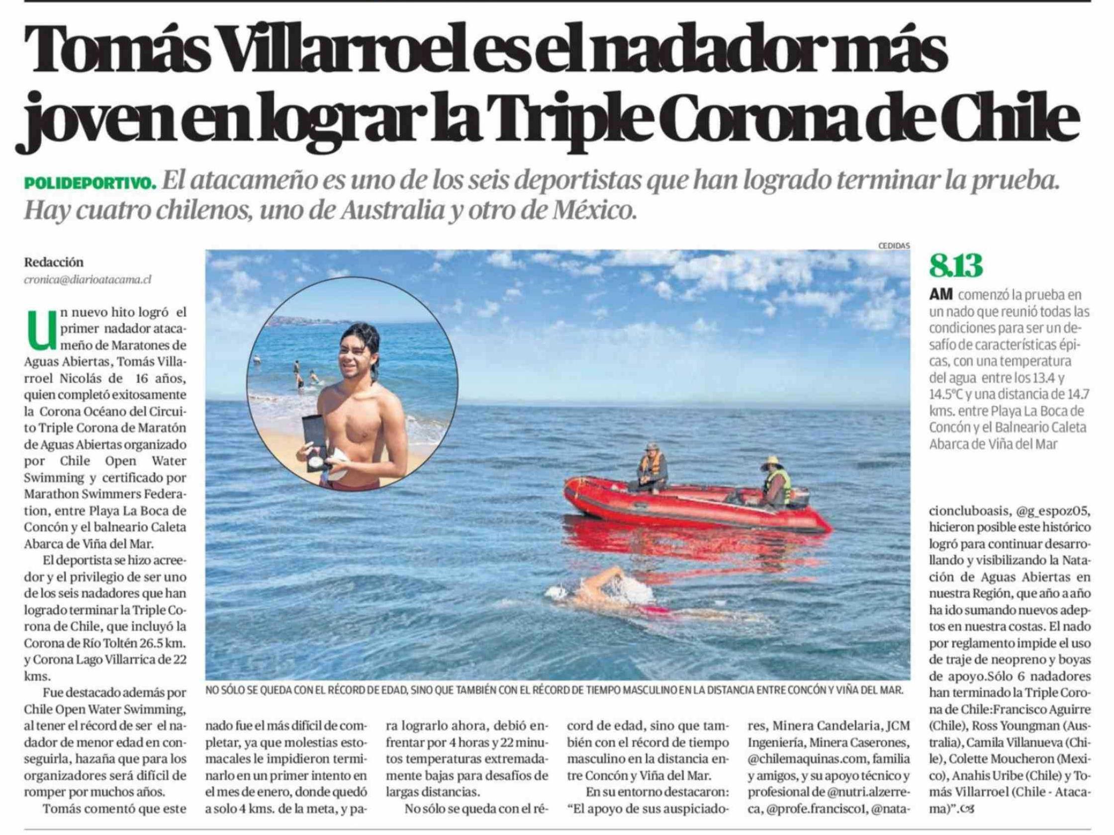 Tomás Villarroel es el nadador más joven en lograr la Triple Corona de Chile