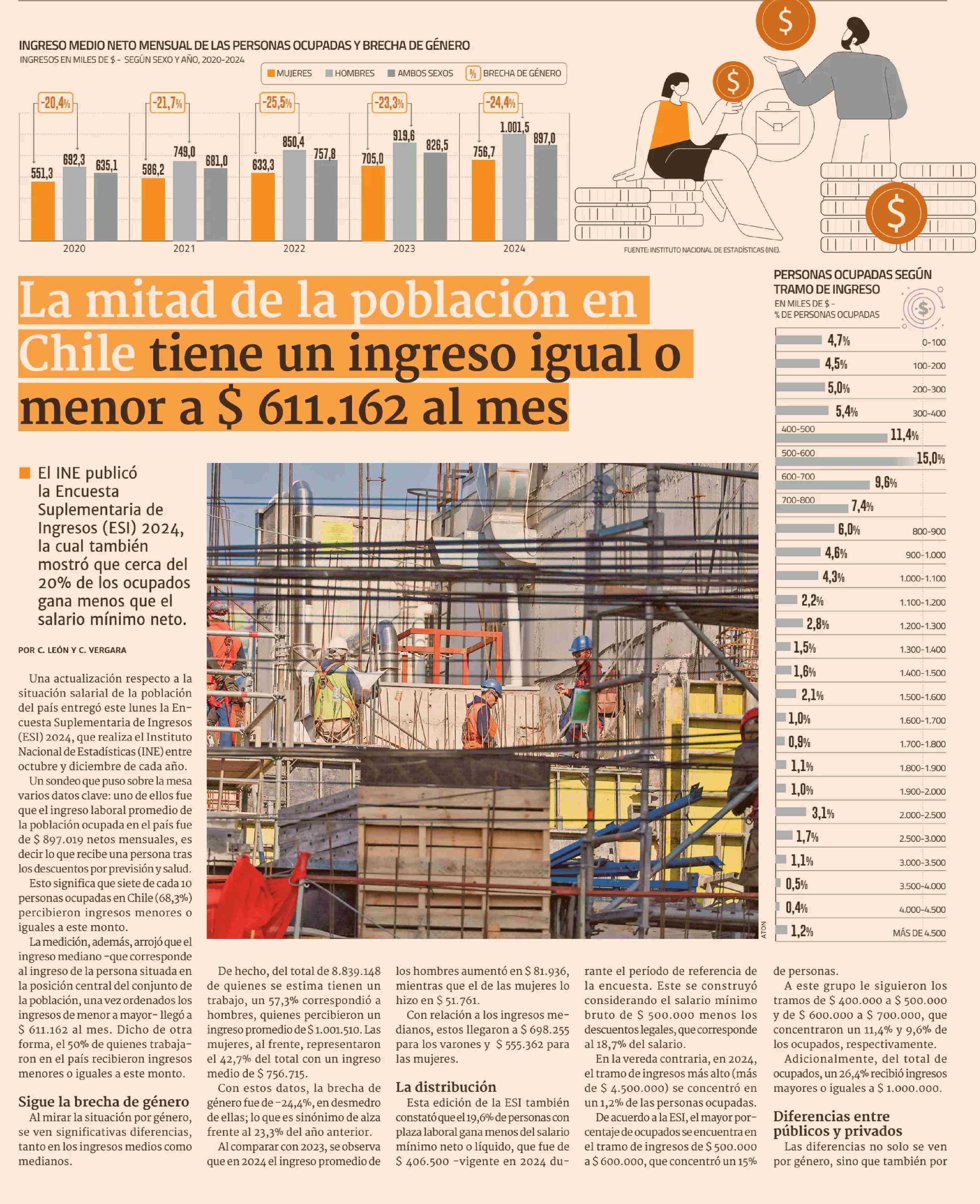 La mitad de la población en Chile tiene un ingreso igual o menor a $ 611.162 al mes
