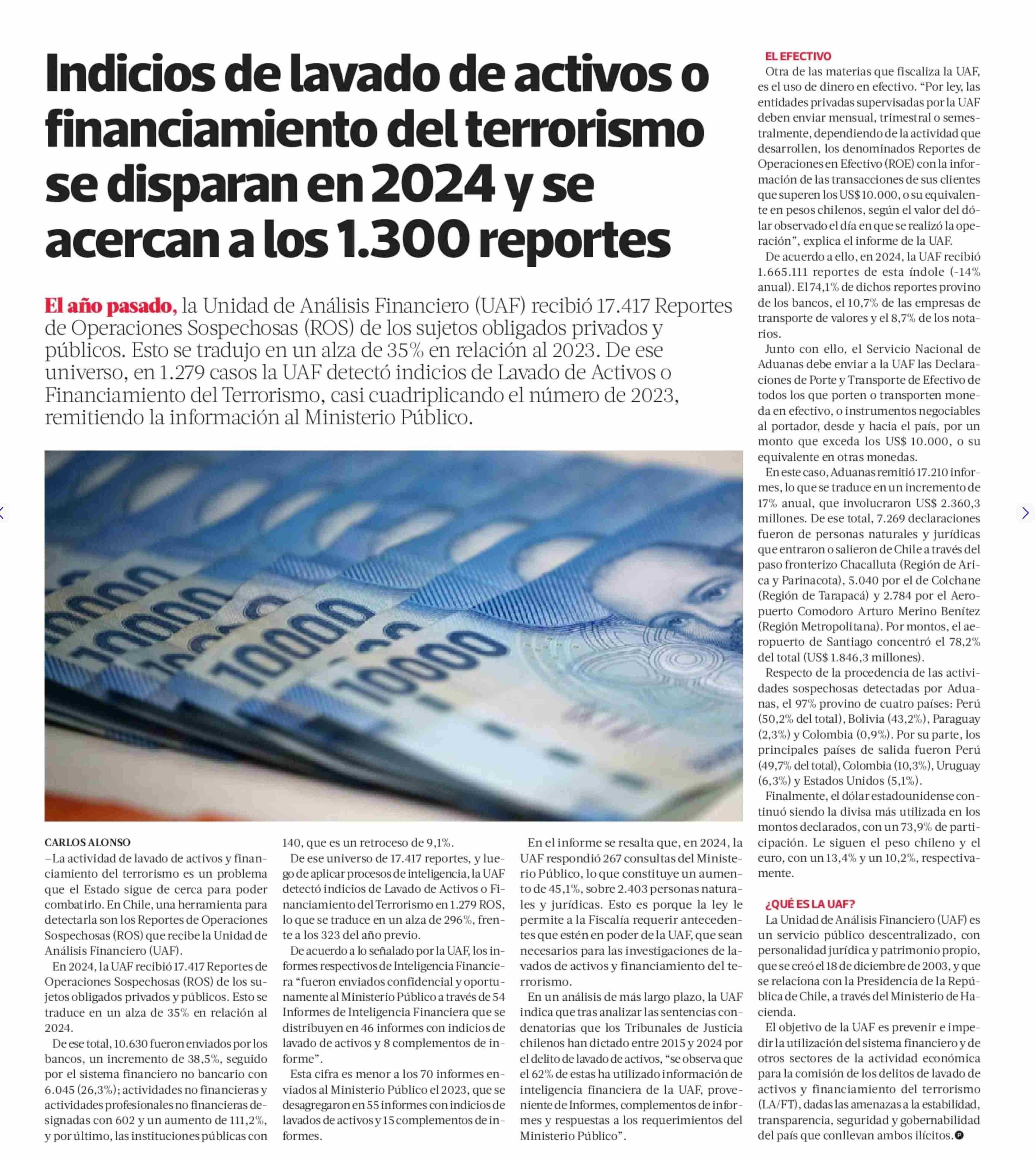 Indicios de lavado de activos o financiamiento del terrorismo se disparan en 2024 y se acercan alos 1.300 reportes