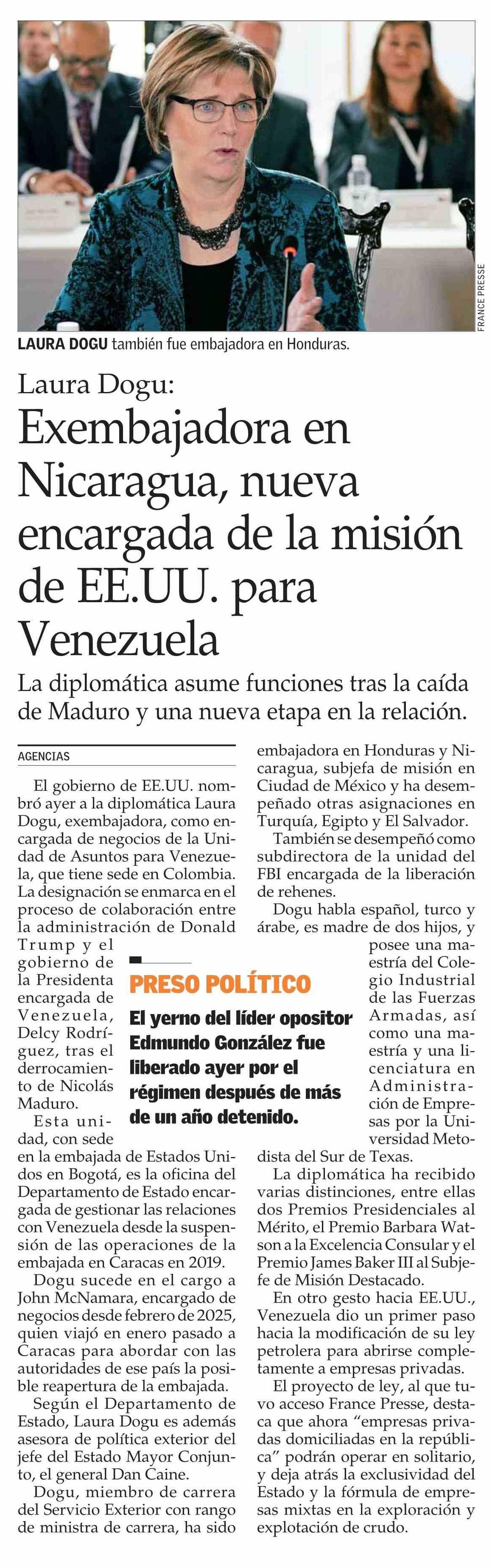 Exembajadora en Nicaragua, nueva encargada de la misión de EE.UU. para Venezuela