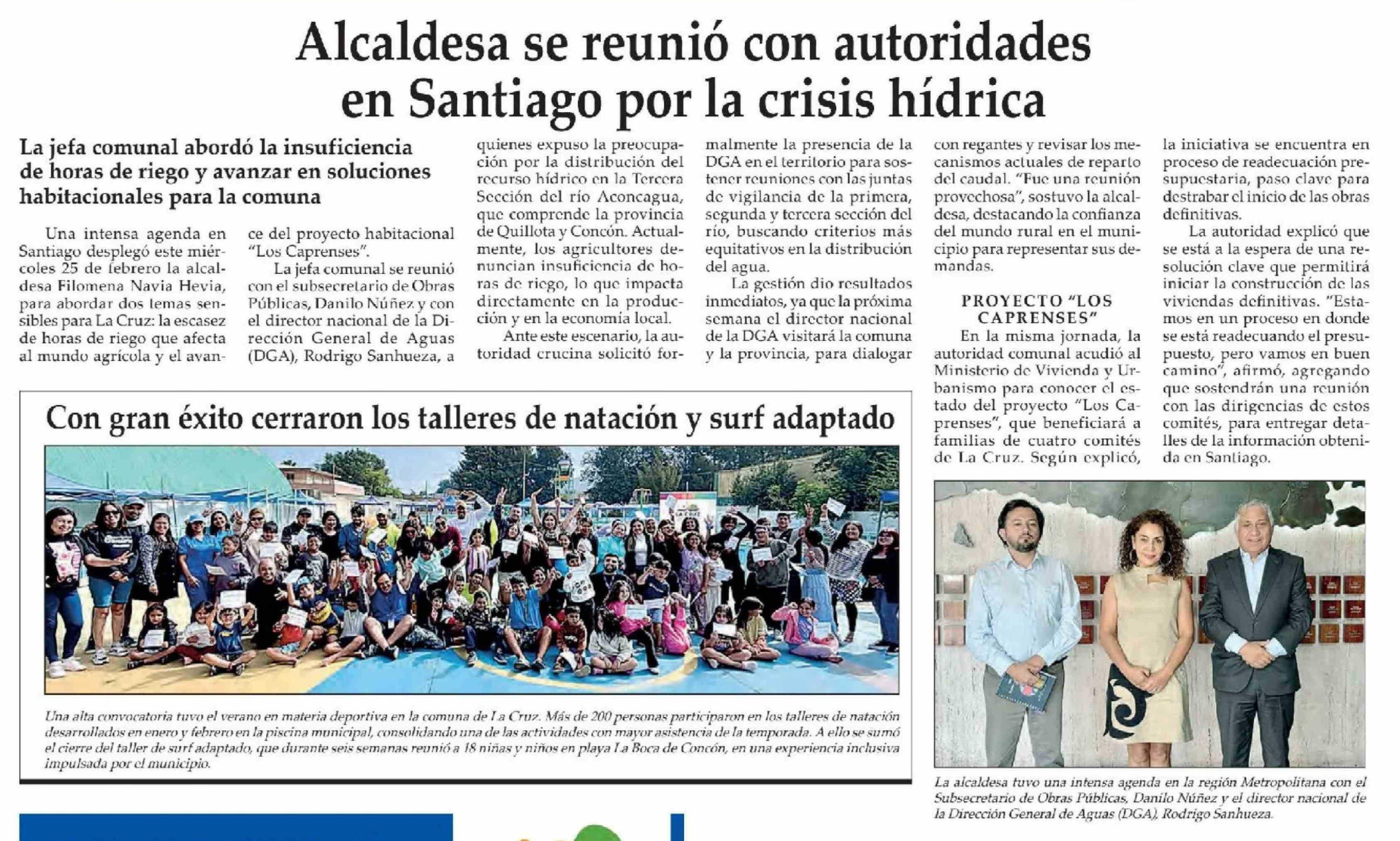 Alcaldesa se reunió con autoridades en Santiago por la crisis hídrica
