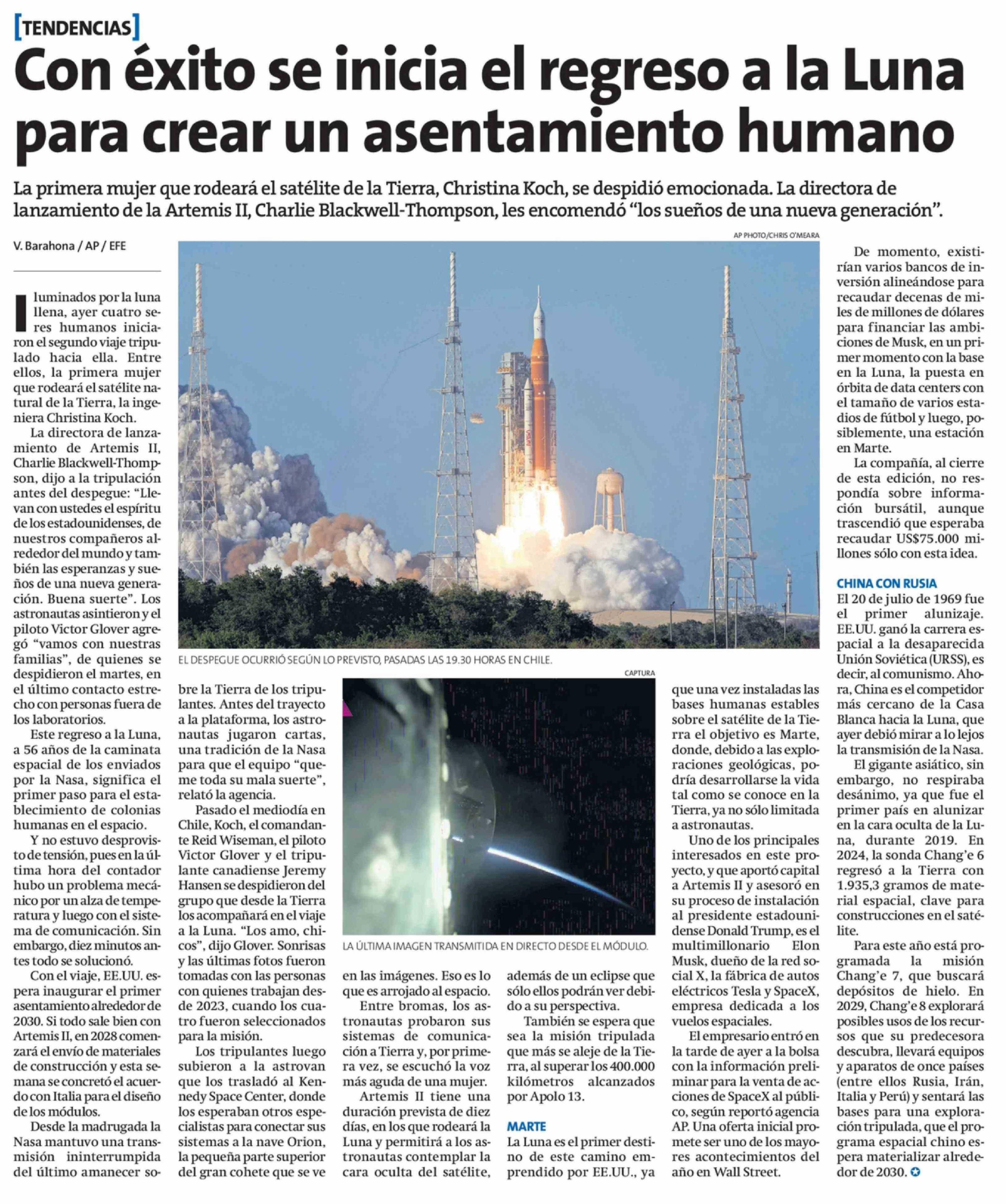 Título: Con éxito se inicia el regreso a la Luna para crear un asentamiento humano