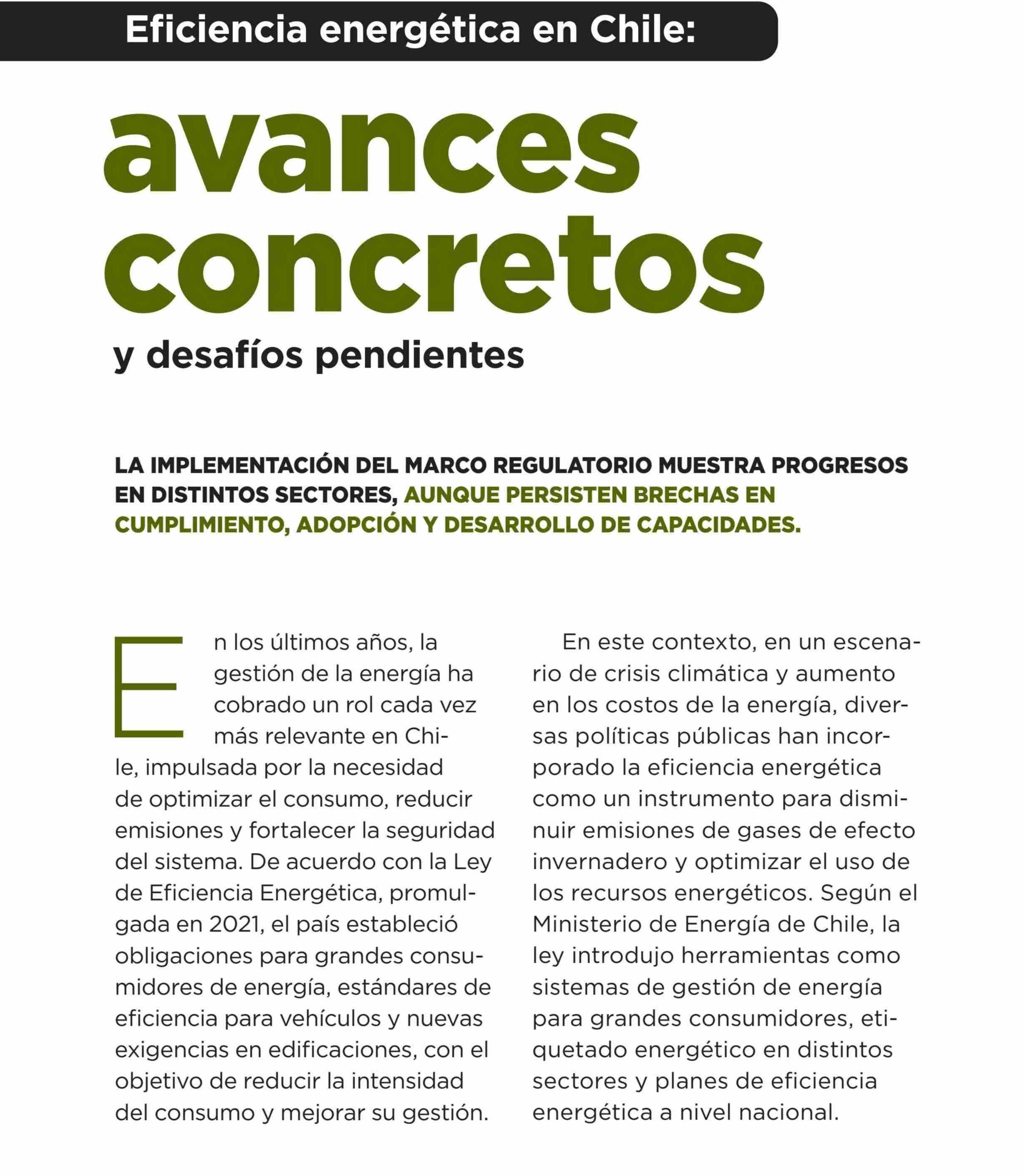 Eficiencia energética en Chile: avances concretos y desafíos prendientes