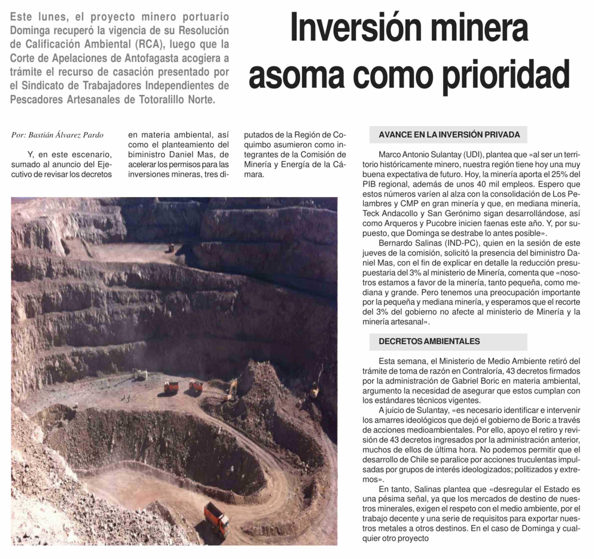 Inversión minera asoma como prioridad