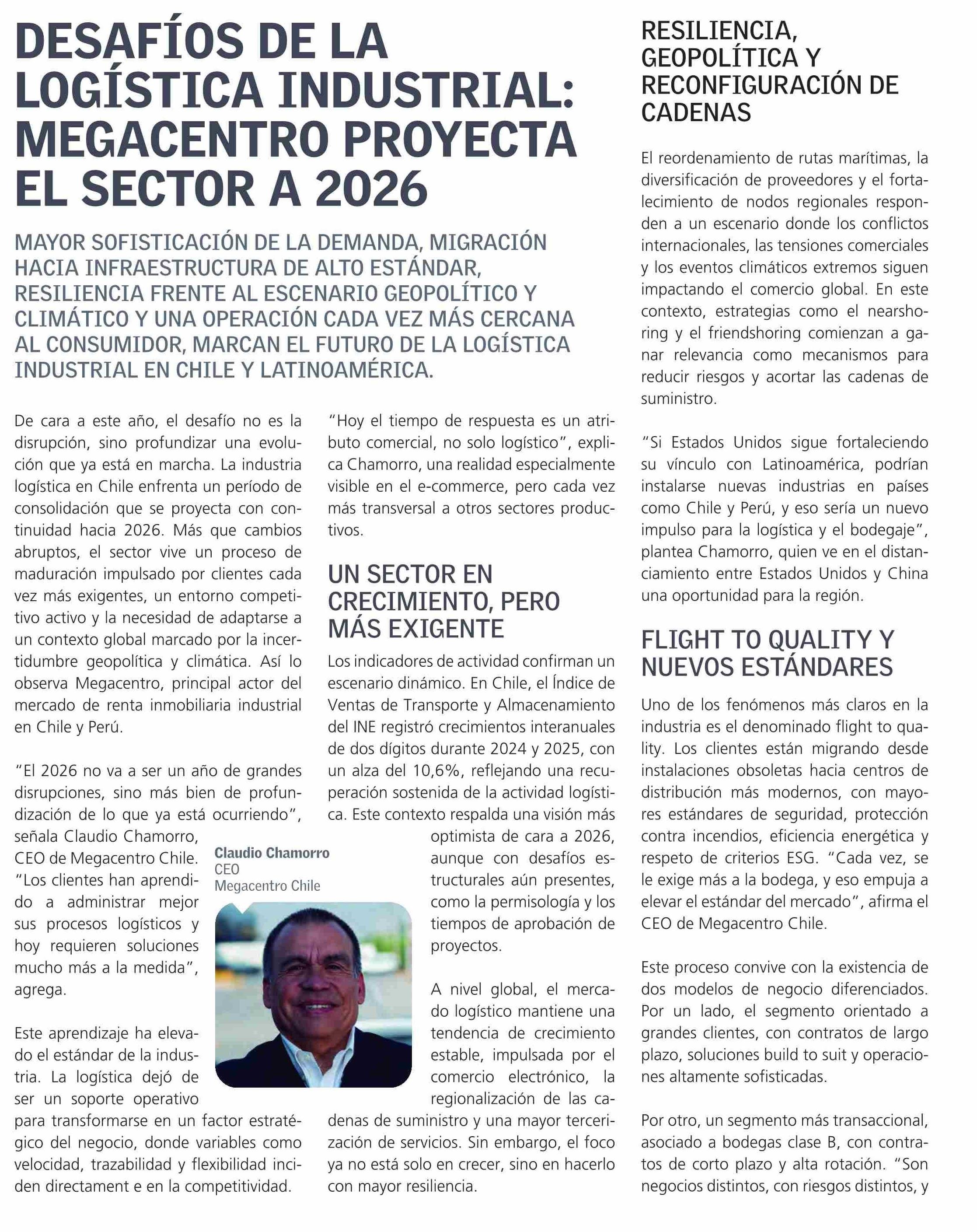 DESAFÍOS DE LA LOGÍSTICA INDUSTRIAL: MEGACENTRO PROYECTA EL SECTOR A 2026