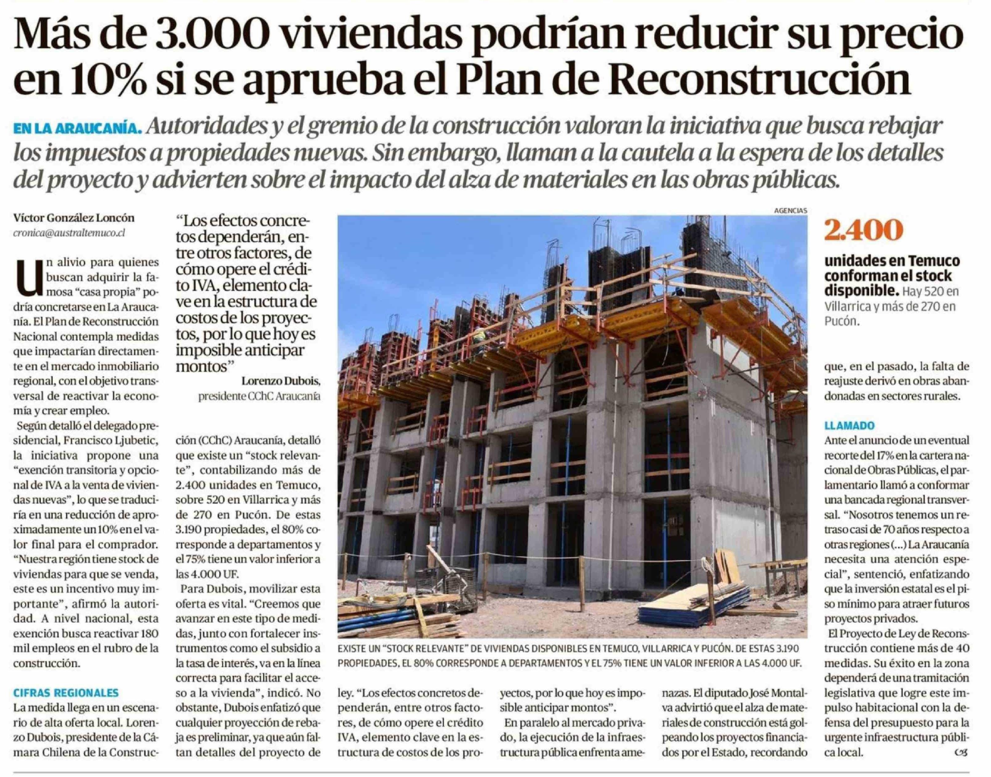 Más de 3.000 viviendas podrían reducir su precio en 10% si se aprueba el Plan de Reconstrucción