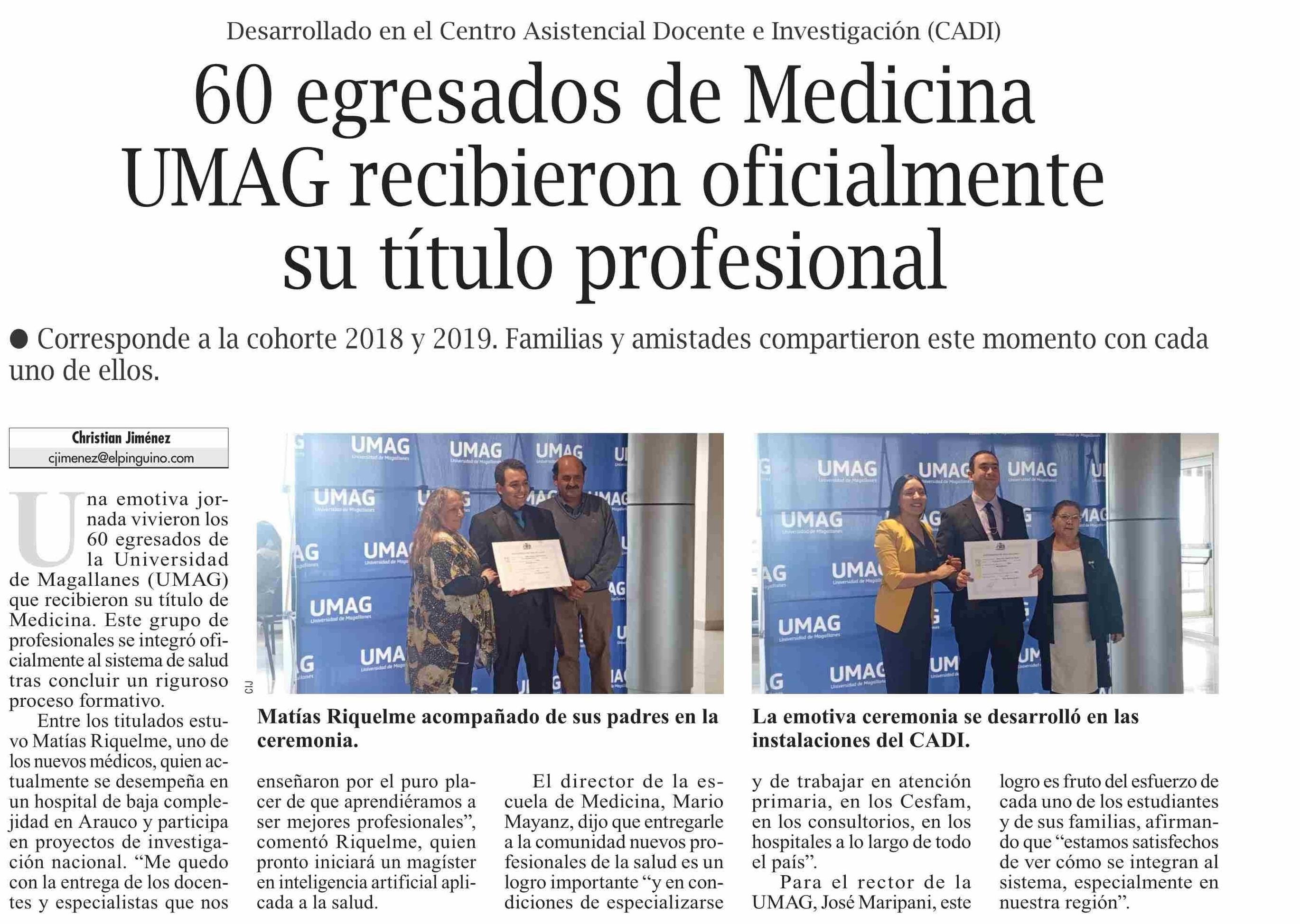60 egresados de Medicina UMAG recibieron oficialmente su título profesional