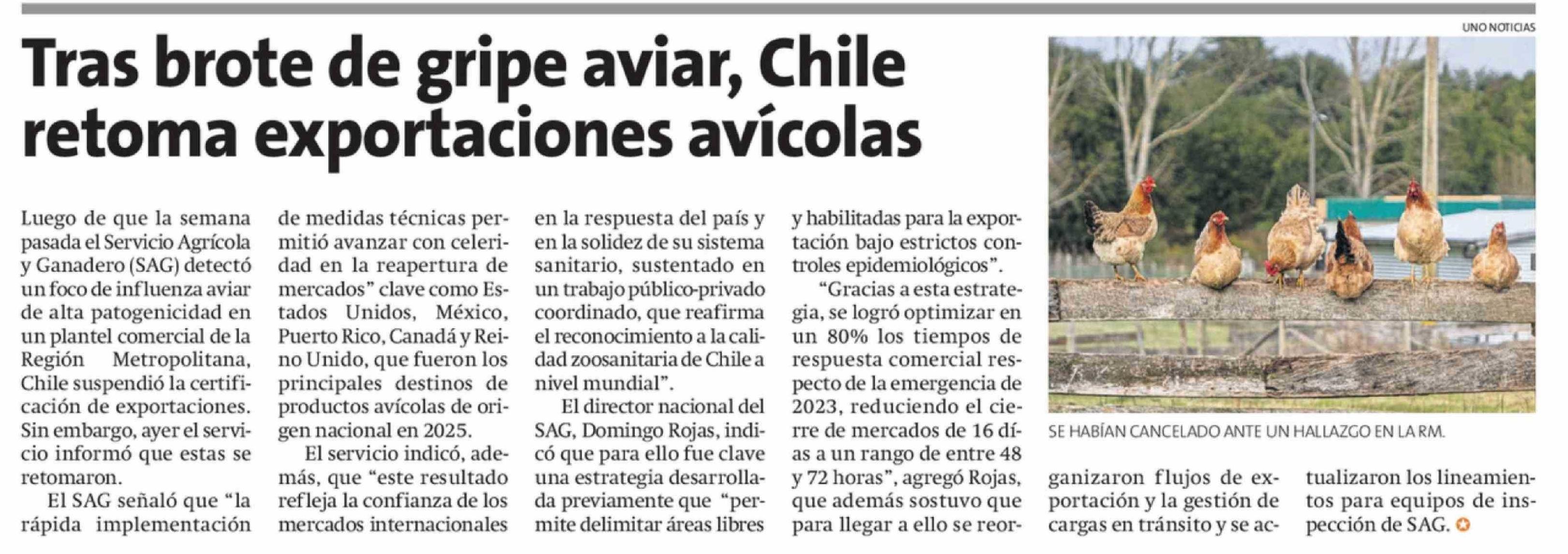 Título: Tras brote de gripe aviar, Chile retoma exportaciones avícolas