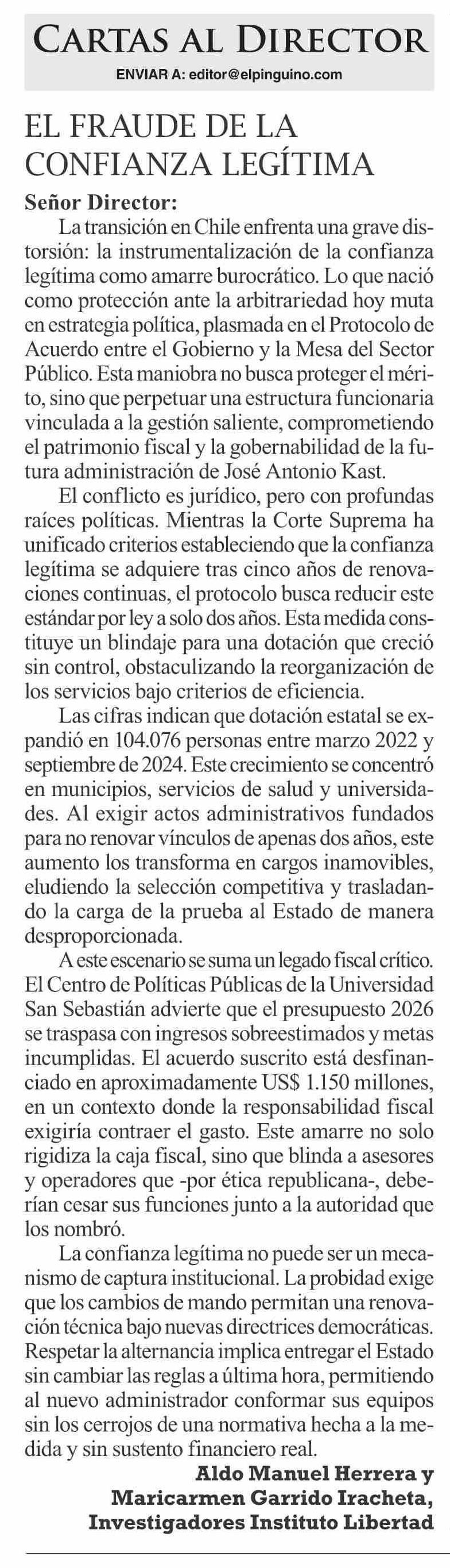 Cartas: EL FRAUDE DE LA CONFIANZA LEGÍTIMA