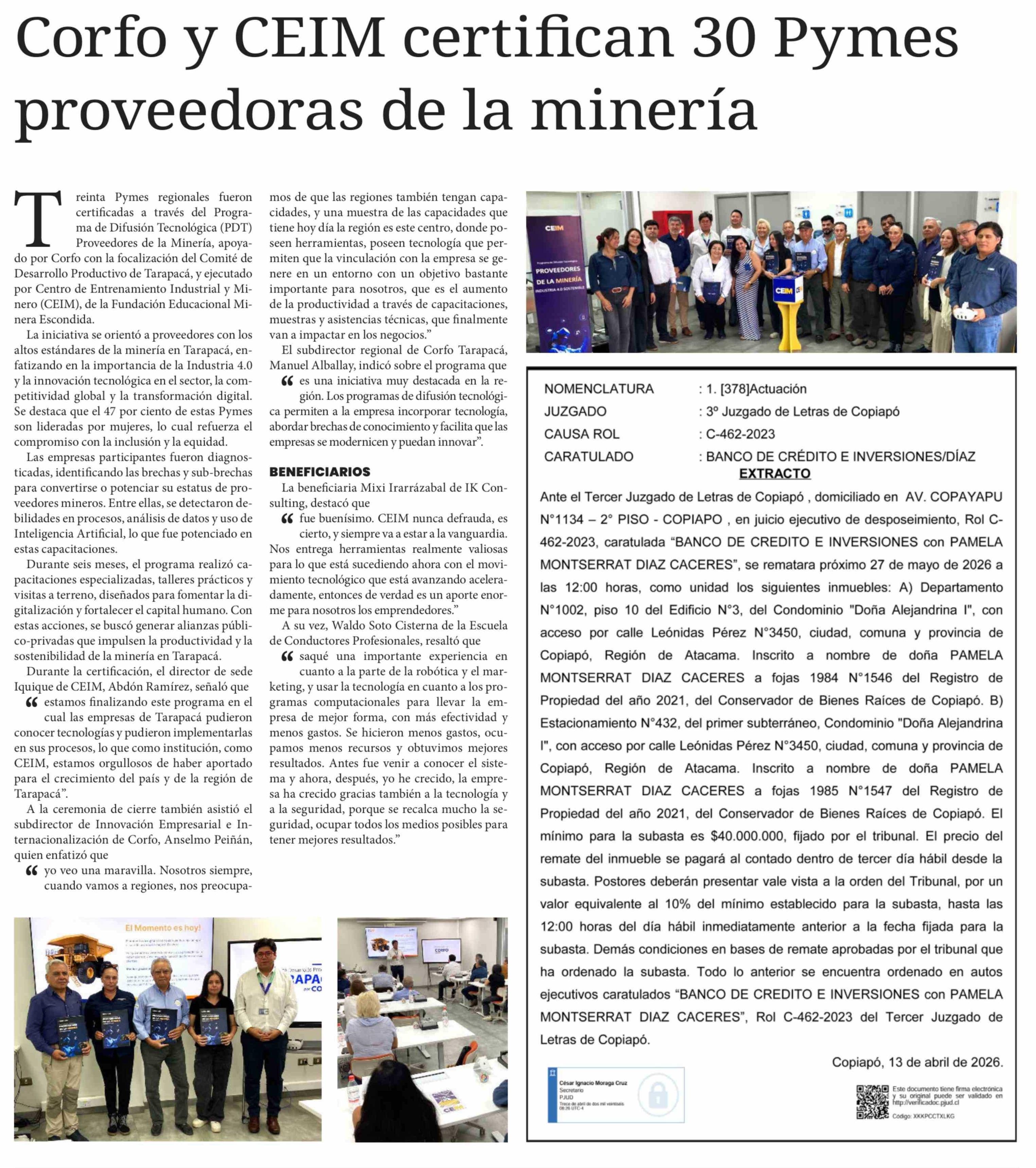 Corfo y CEIM certifican 30 Pymes proveedoras de la minería