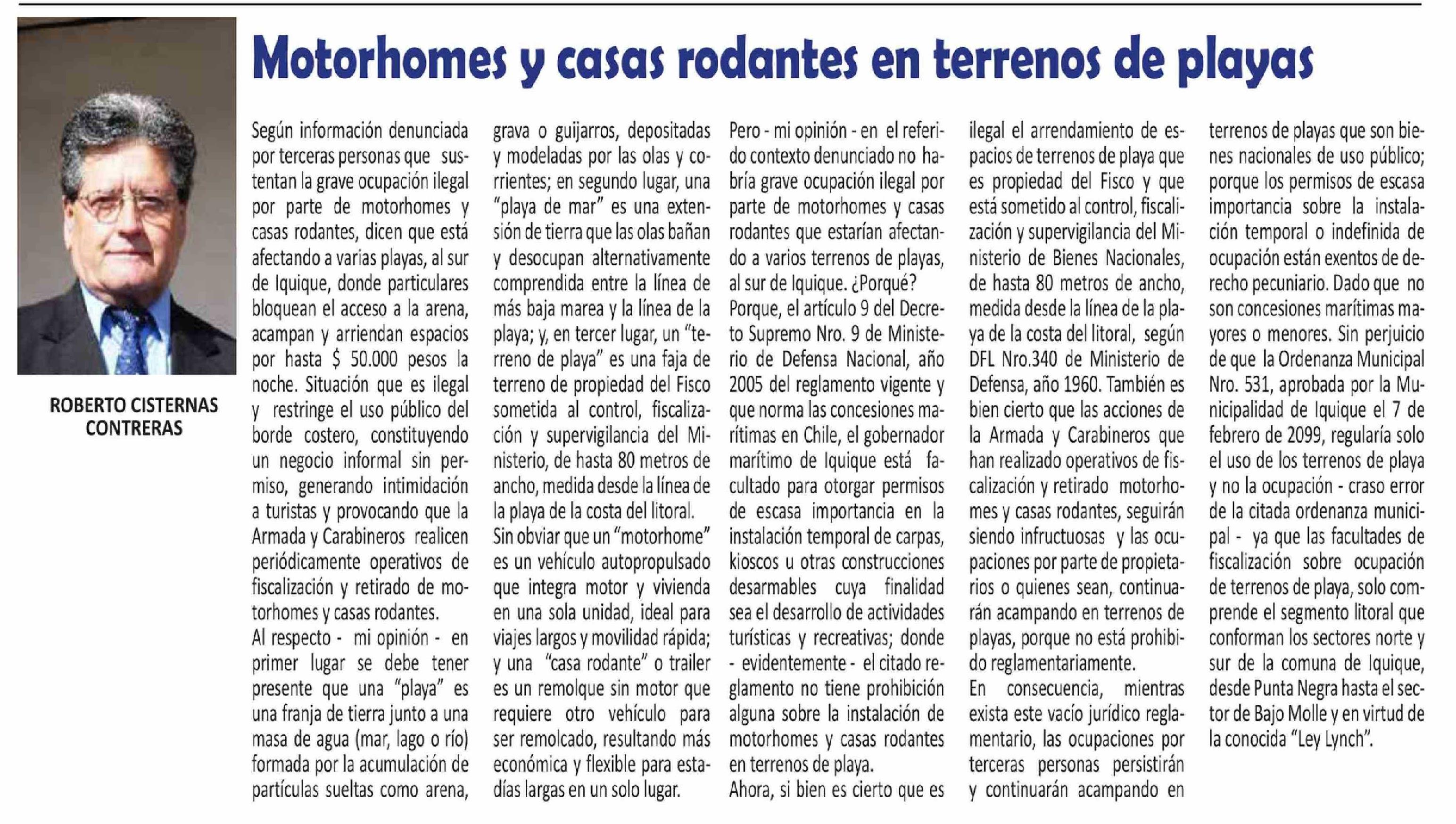 Columnas de Opinión: Motorhomes y casas rodantes en terrenos de playas