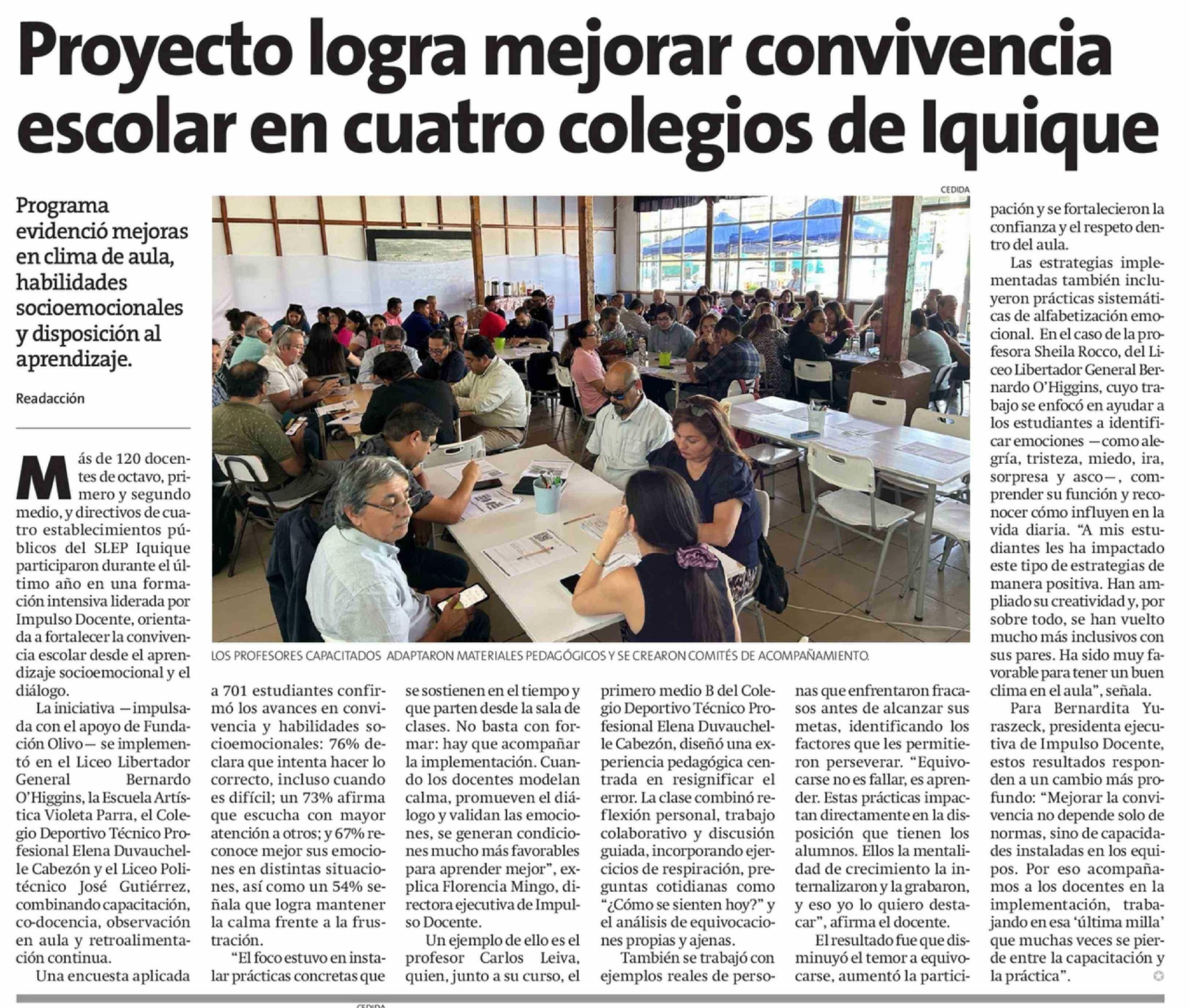 Proyecto logra mejorar convivencia escolar en cuatro colegios de Iquique