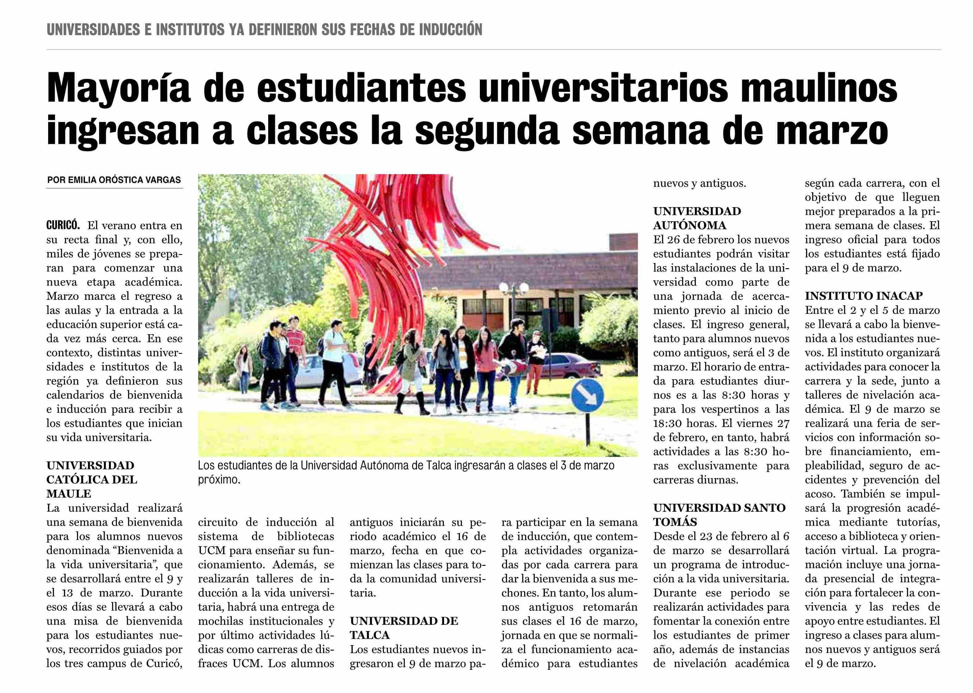 Mayoría de estudiantes universitarios maulinos ingresan a clases la segunda semana de marzo