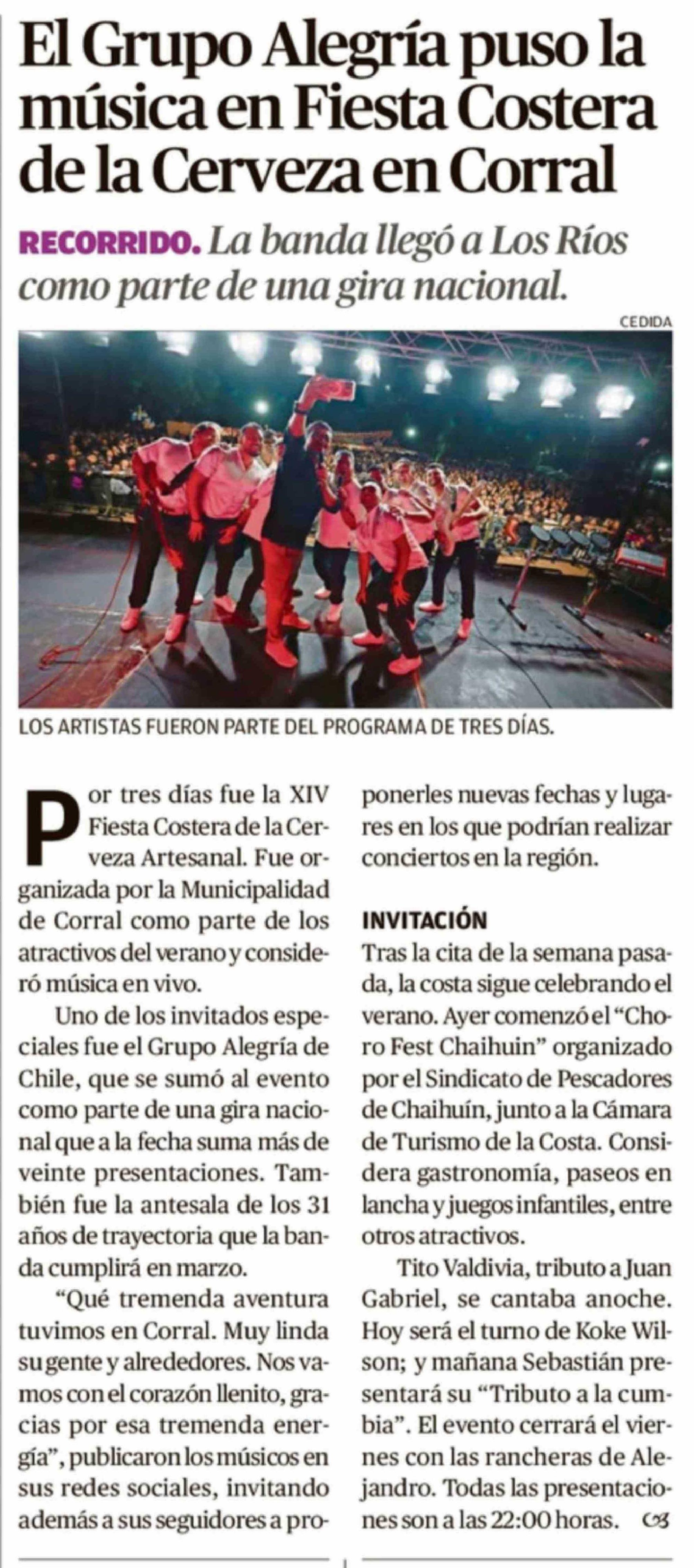 El Grupo Alegría puso la música en Fiesta Costera de la Cerveza en Corral