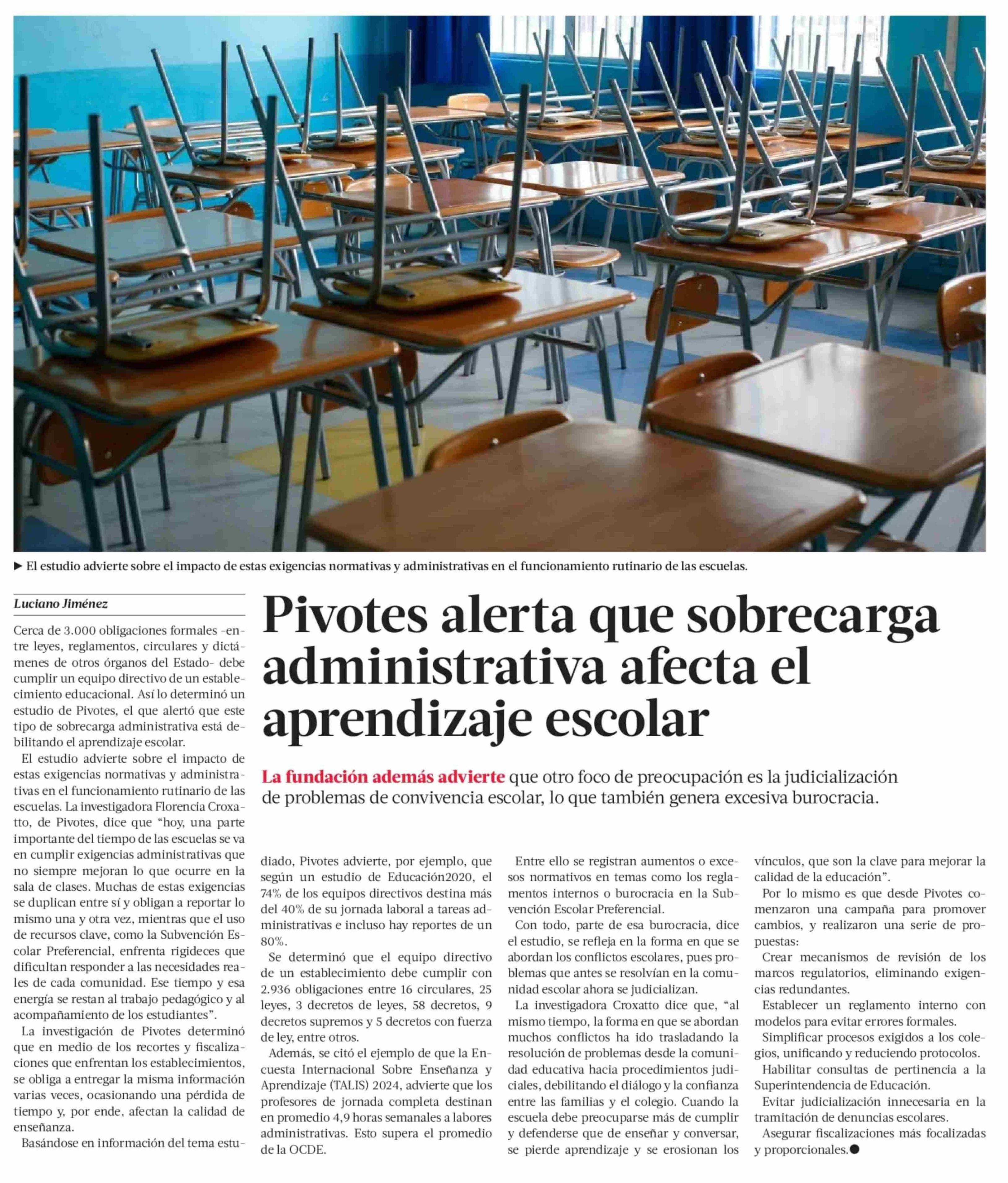 Pivotes alerta que sobrecarga administrativa afecta el aprendizaje escolar