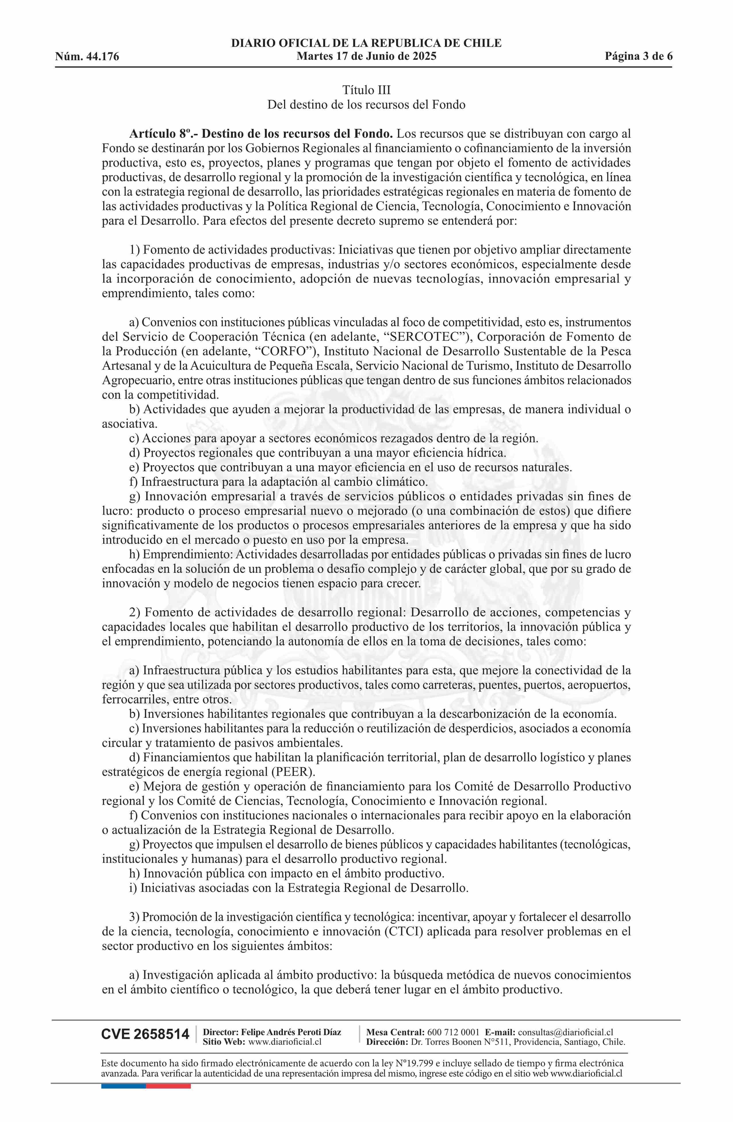 Título: Decreto número 1.699, de 2024.- Aprueba decreto supremo que regula la administración, operación, condiciones, destino y distribución de recursos del Fondo Regional para la Productividad y el Desarrollo