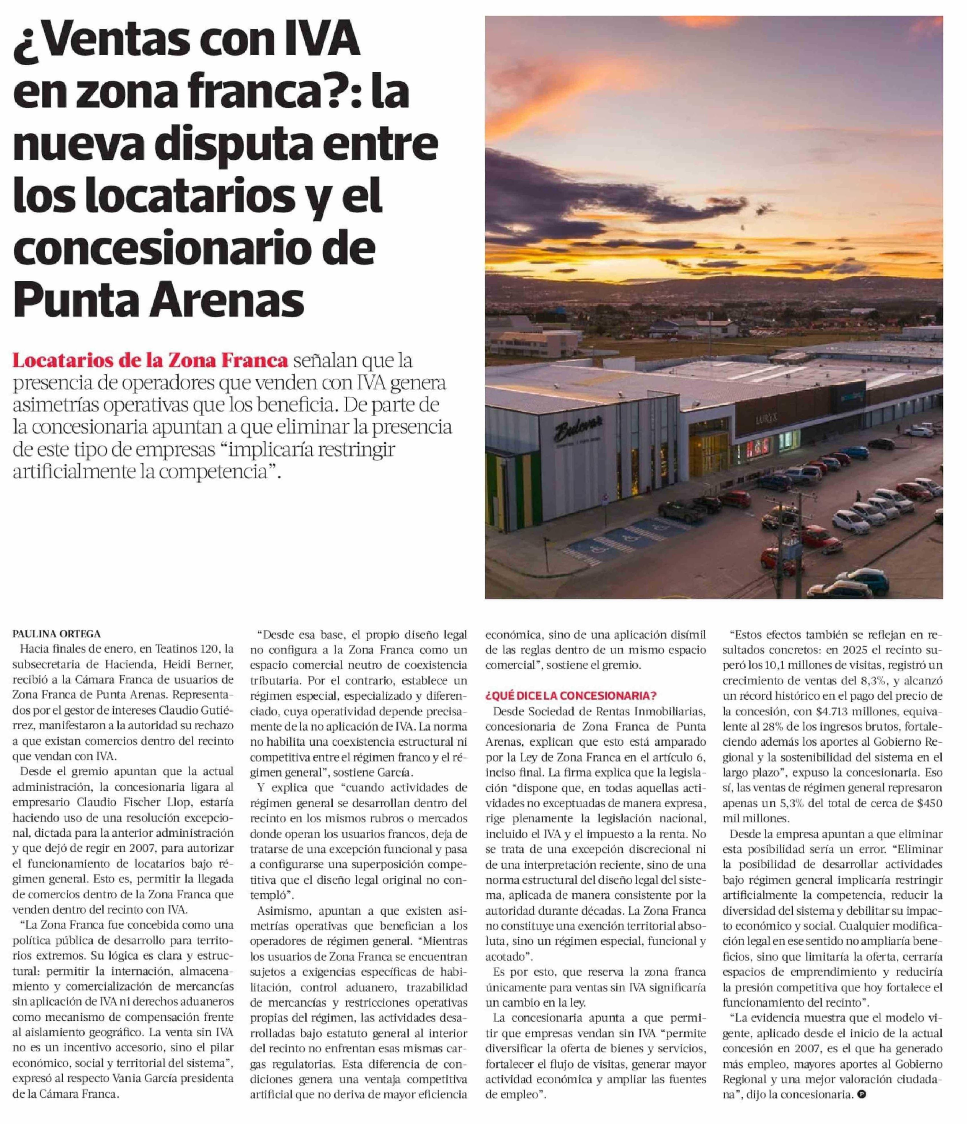 ¿Ventas con IVA en zona franca ?: la nueva disputa entre los locatarios y el concesionario de Punta Arenas