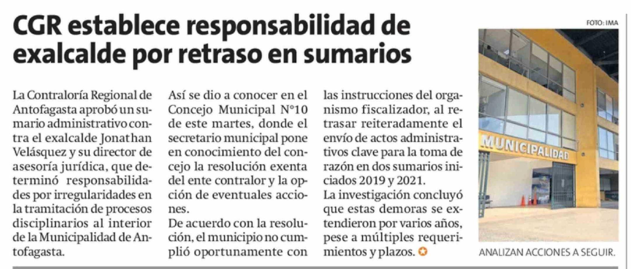 CGR establece responsabilidad de exalcalde por retraso en sumarios