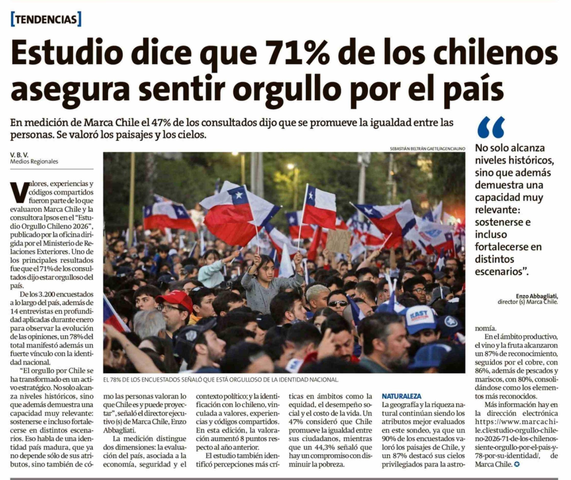 Estudio dice que 71% de los chilenos asegura sentir orgullo por el país