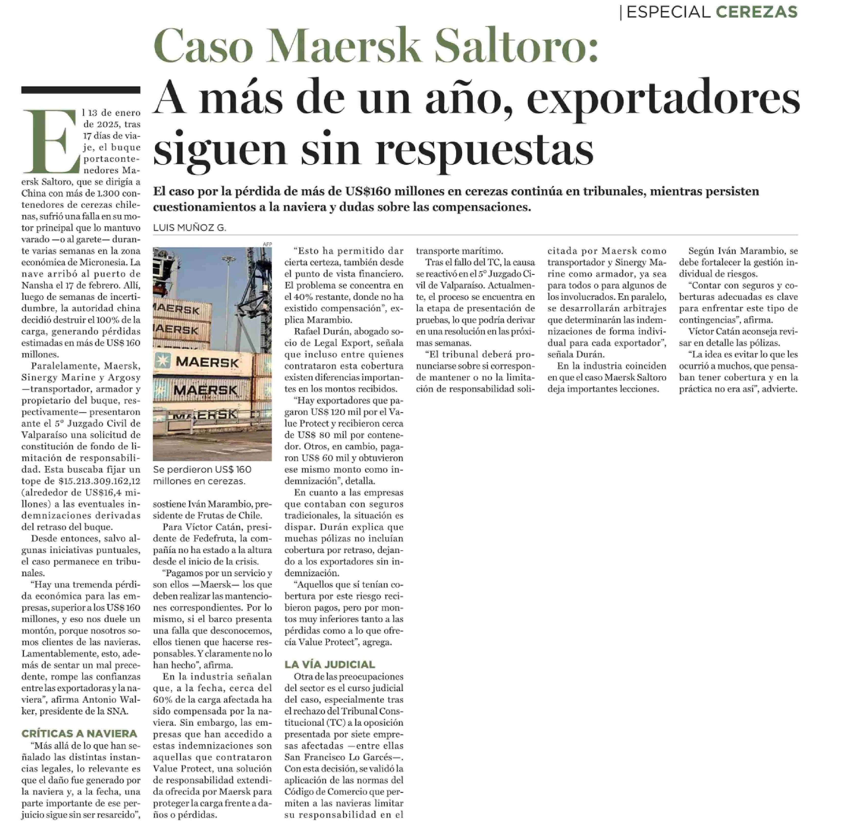 Caso Maersk Saltoro: A más de un año, exportadores siguen sin respuestas