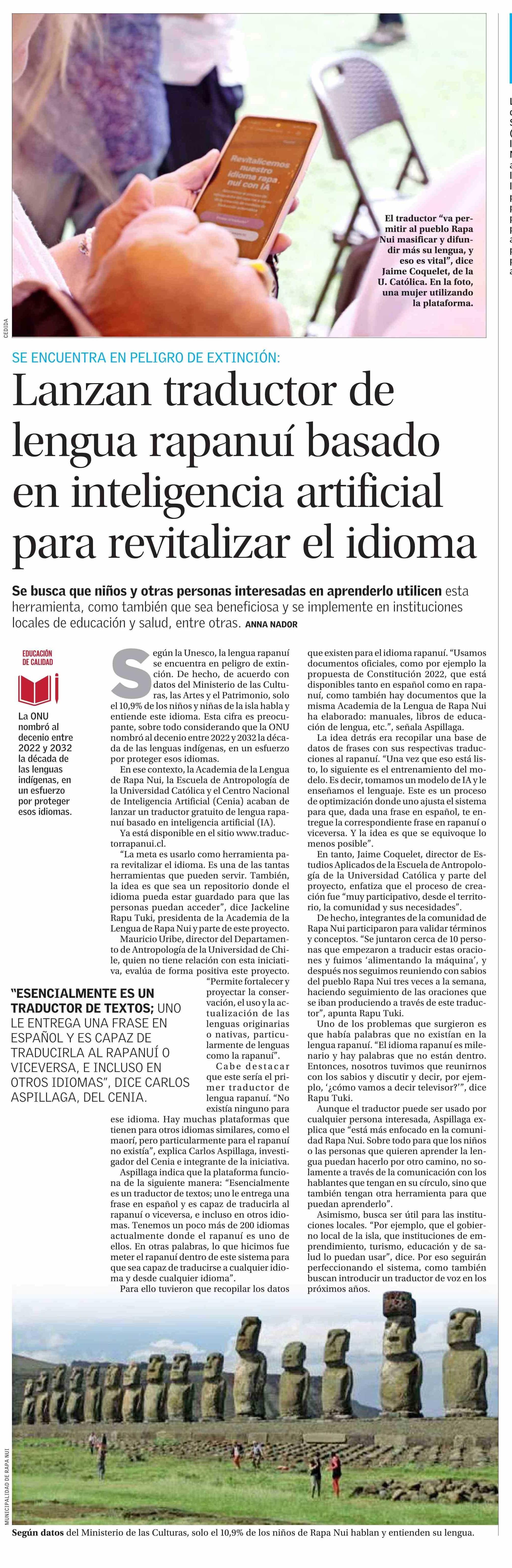 Lanzan traductor de lengua rapanuí basado en inteligencia artificial para revitalizar el idioma