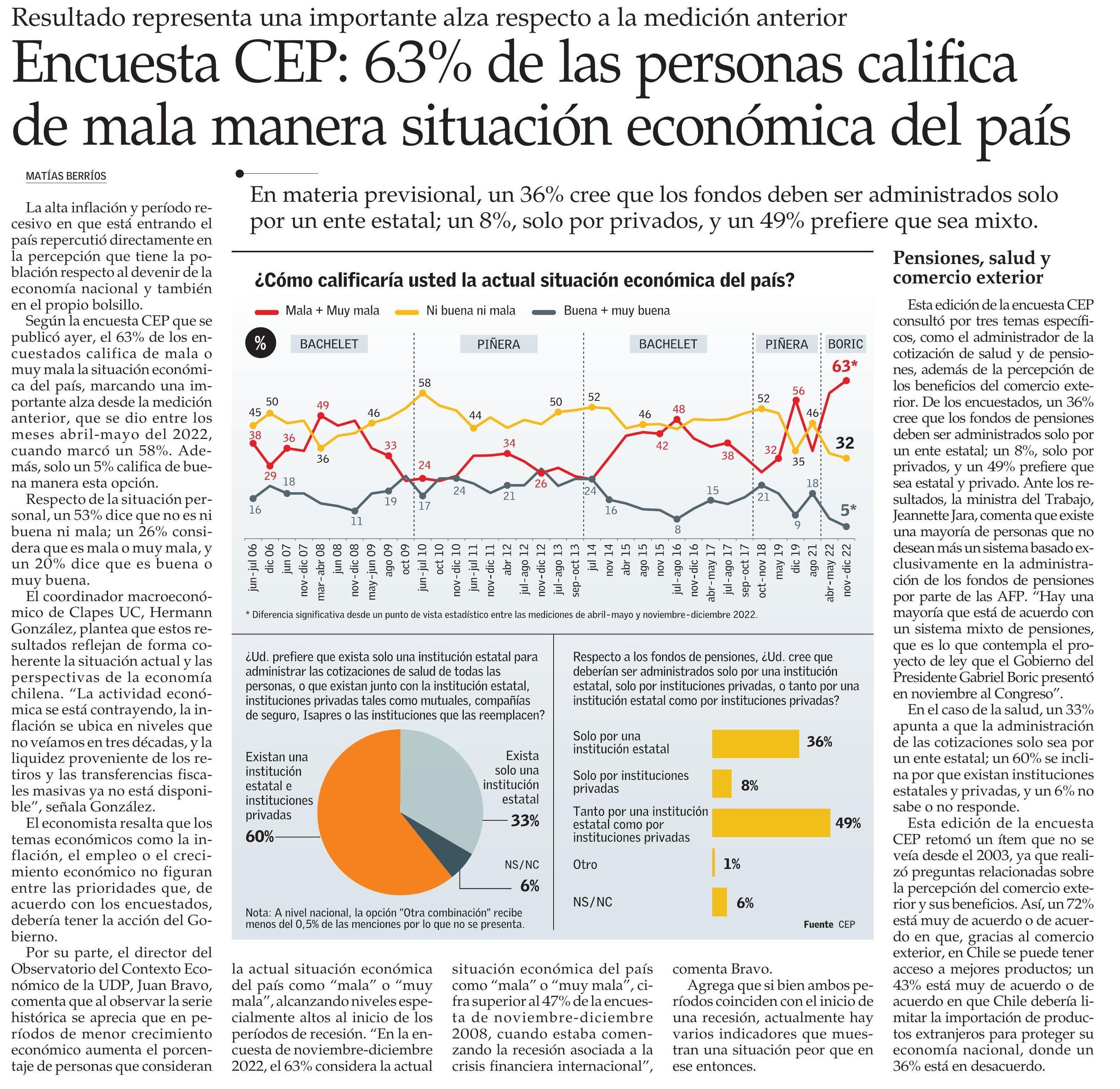 Encuesta CEP: 63% de las personas califica de mala manera situación económica del país