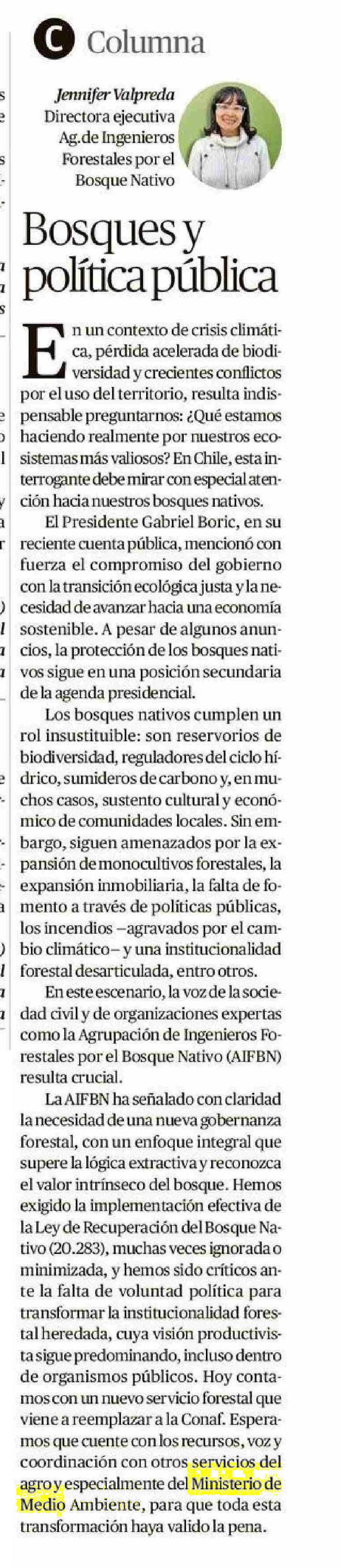 COLUMNAS DE OPINIÓN: Bosques y política pública