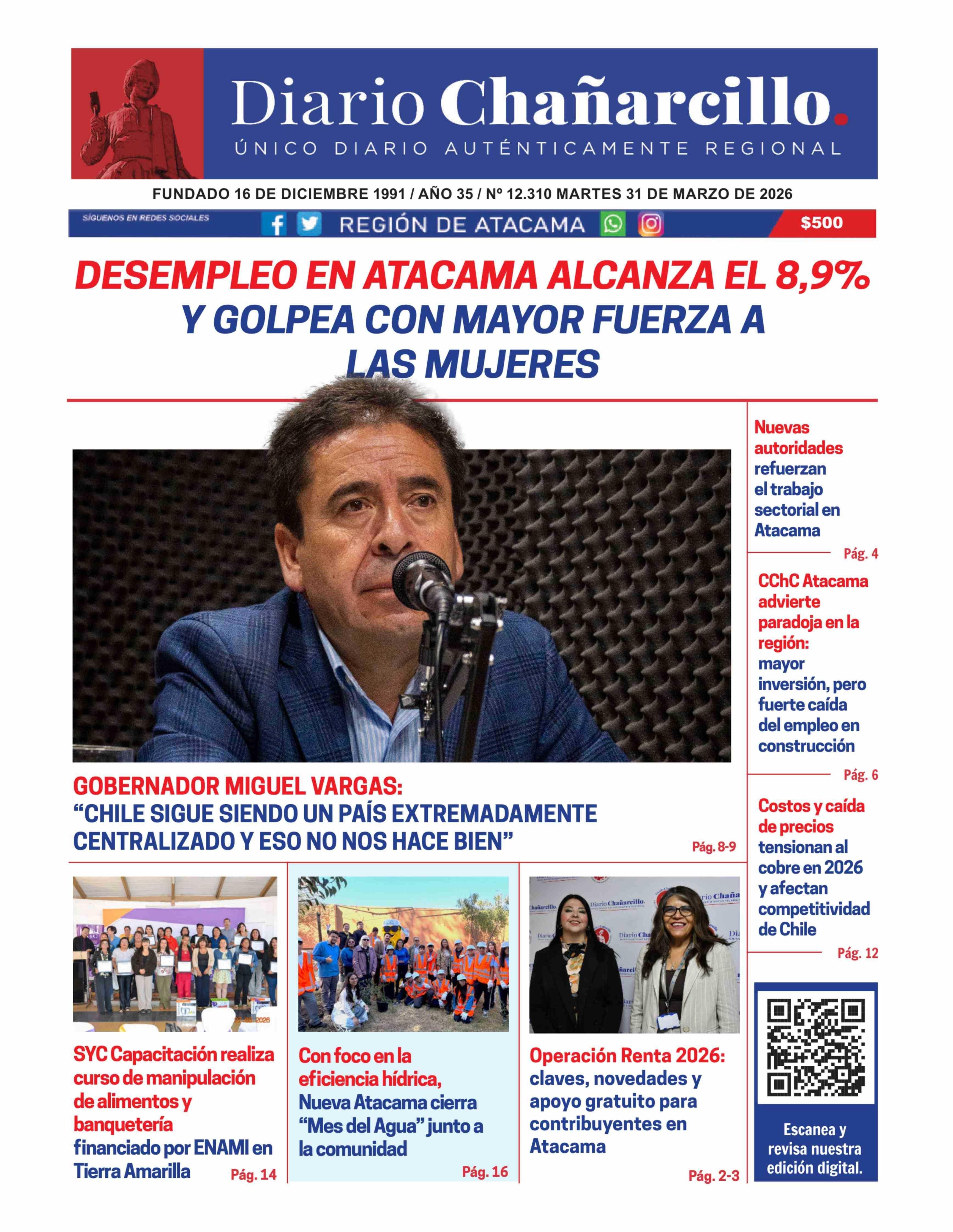 PORTADA DIARIO CHAÑARCILLO CHILE