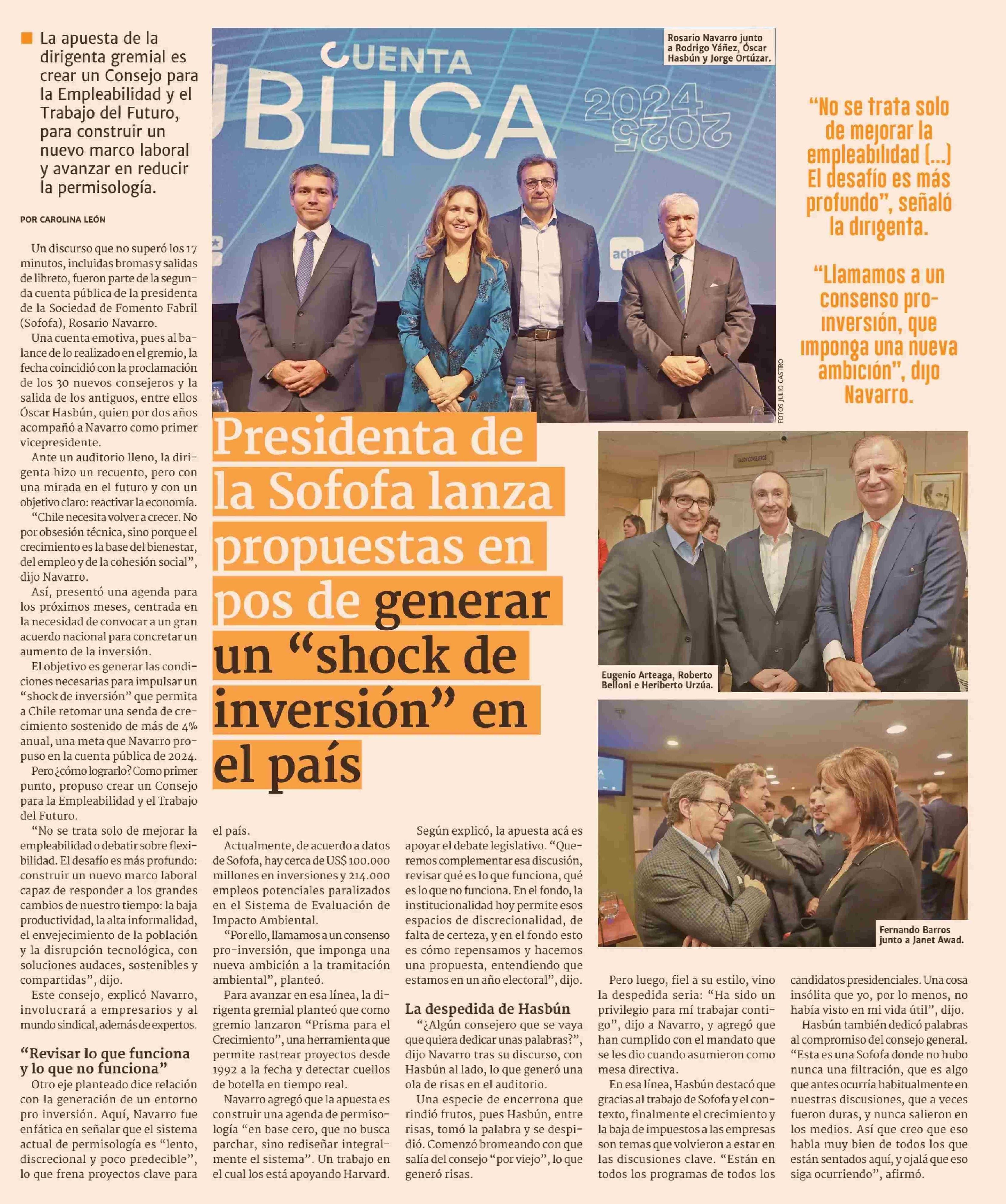 Presidenta de la Sofofa lanza propuestas en pos de generar un “shock de inversión” en el país