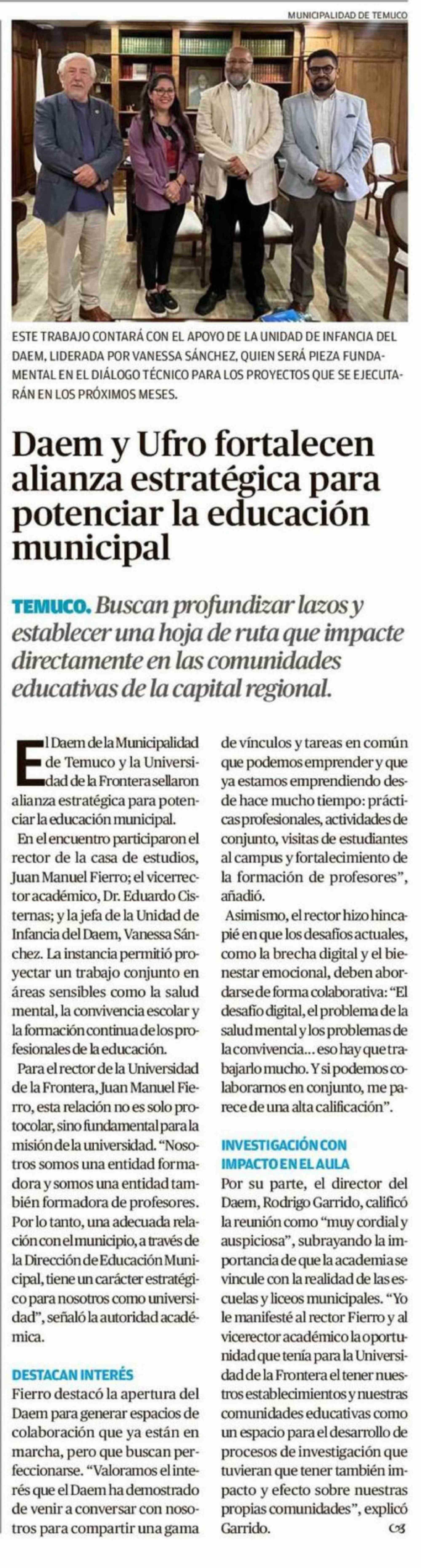 Daem y Ufro fortalecen alianza estratégica para potenciar la educación municipal